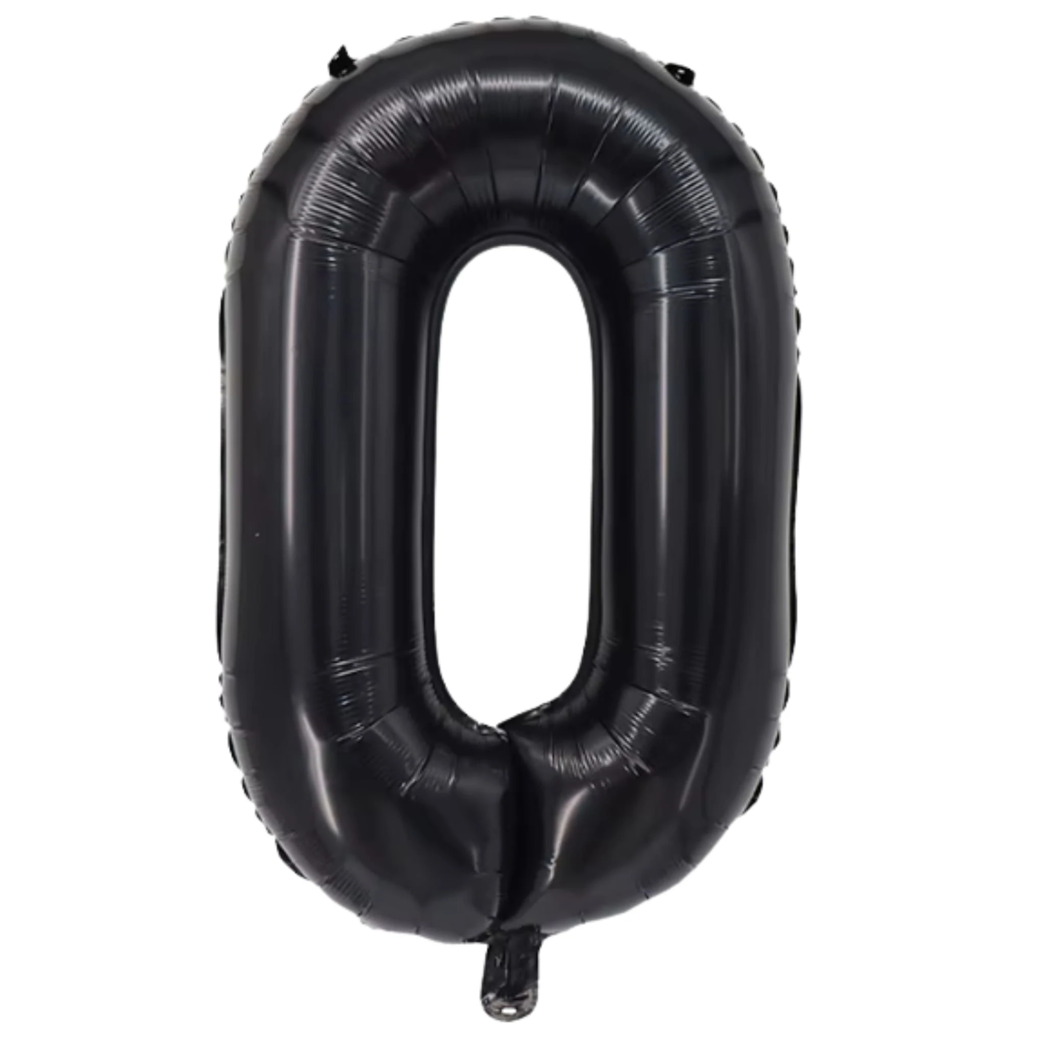 Balon foliowy cyfra 0 czarny chromowany 81 cm
