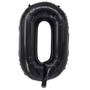Balon foliowy w kształcie cyfry 0 w kolorze czarnym, chromowanym. Rozmiar po napompowaniu: 81 cm. Do napełniania powietrzem lub helem, 1 sztuka w opakowaniu.