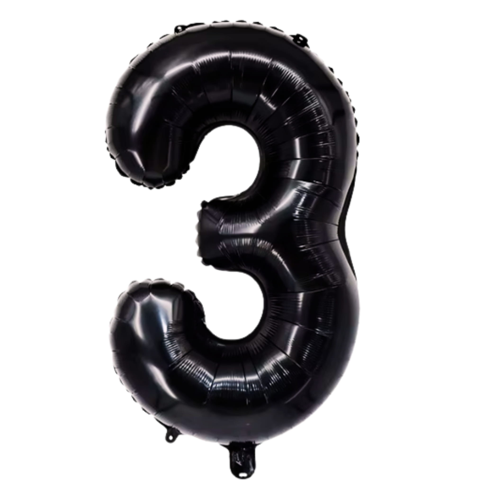 Balon foliowy w kształcie cyfry 3 w kolorze czarnym, chromowanym. Rozmiar po napompowaniu: 81 cm. Do napełniania powietrzem lub helem, 1 sztuka w opakowaniu.