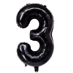 Wykorzystaj cyfrę 3 jako element dekoracji urodzinowej (np. 3. urodziny) albo połącz ją z innymi cyframi, aby stworzyć wiek jubilata lub datę wydarzenia. Czerń w chromowanym połysku dobrze wygląda na jasnym tle i w kompozycjach z dodatkami w złocie lub srebrze. Jeśli budujesz dekorację do zdjęć, umieść cyfry centralnie na ściance albo wpleć je w girlandę balonową. Dopasuj brakujące cyfry w tej samej kategorii balony cyfry i litery.