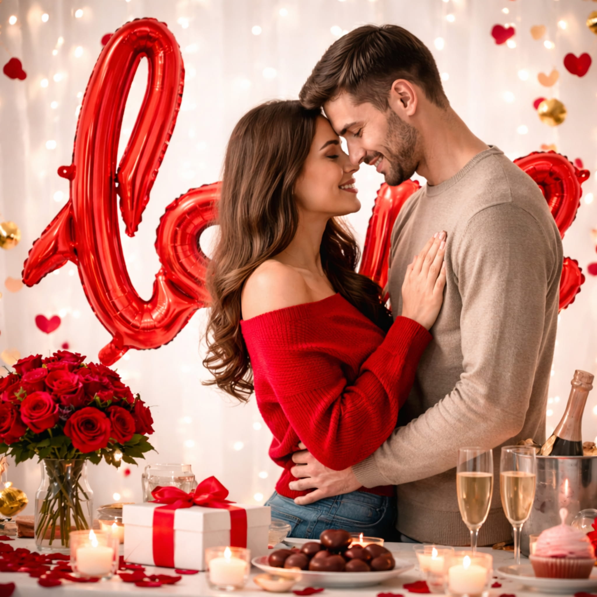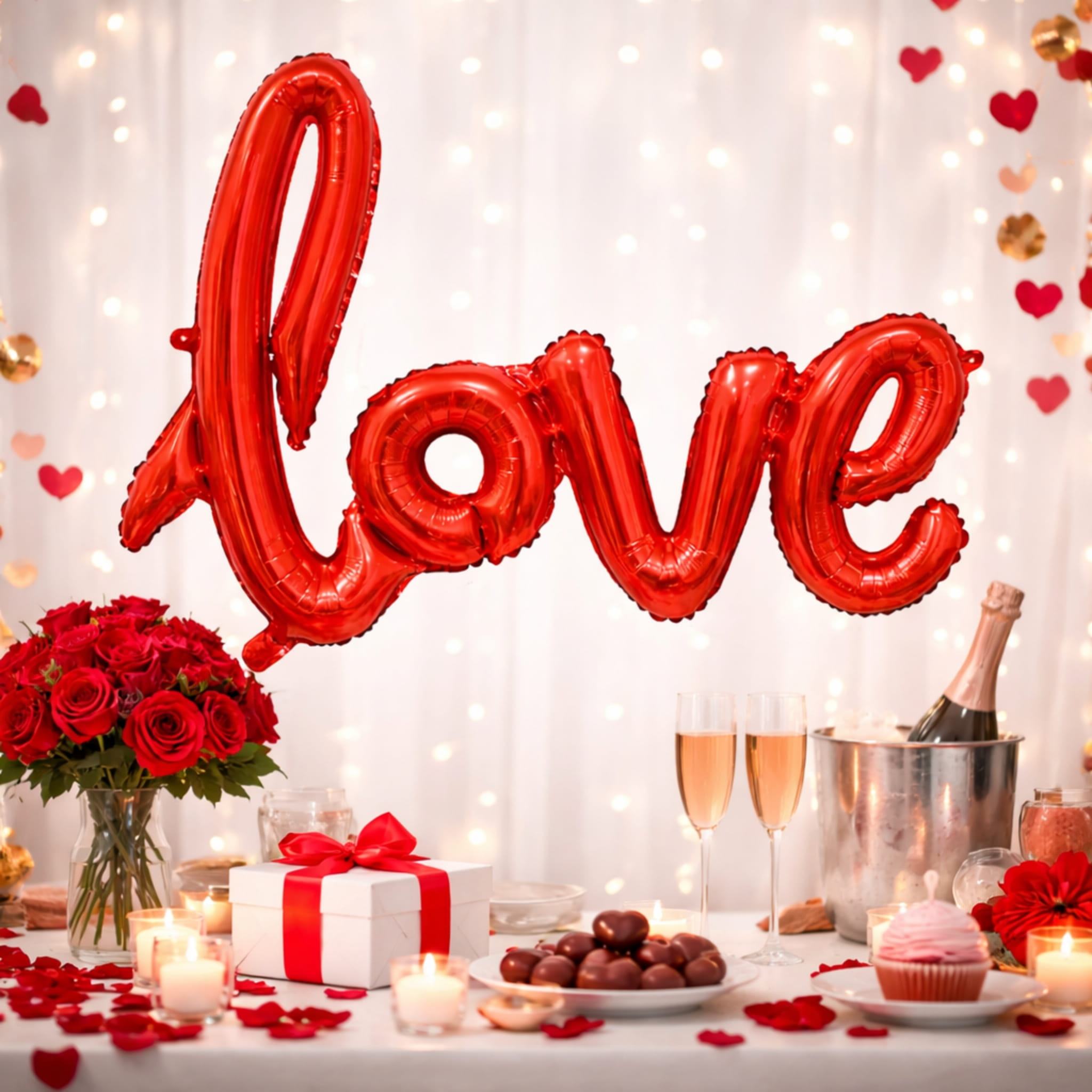 Ustaw balon LOVE jako centralny element ścianki do zdjęć i dołóż po bokach balony w neutralnych kolorach, aby napis był jeszcze bardziej widoczny. W aranżacji na zaręczyny dobrze wygląda w połączeniu z bielą oraz dodatkami w złotym odcieniu. Jeśli dekorujesz salę, umieść napis w miejscu, które naturalnie przyciąga uwagę gości, np. przy stole głównym. Dobierz dodatki z kategorii balony foliowe, żeby zachować spójny styl.