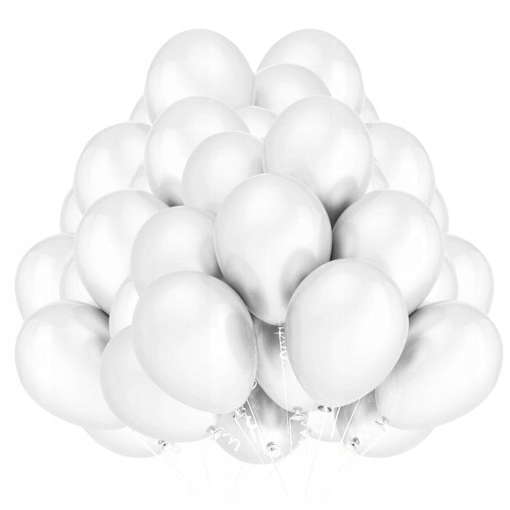 Zestaw 50 białych balonów lateksowych o średnicy ok. 30,5 cm po nadmuchaniu. Do napełniania powietrzem lub helem – sprawdzą się na ślub, wesele, komunię i chrzest.