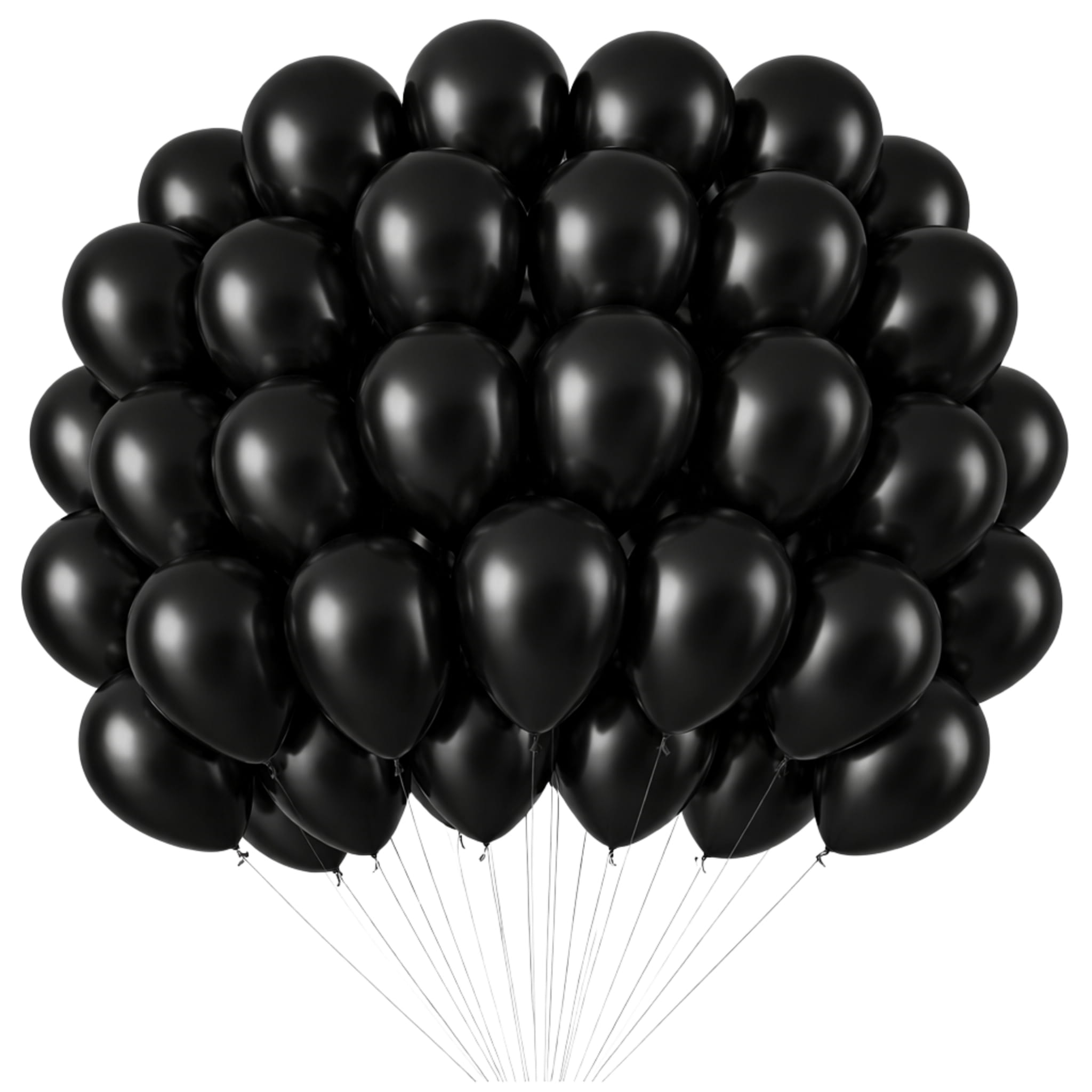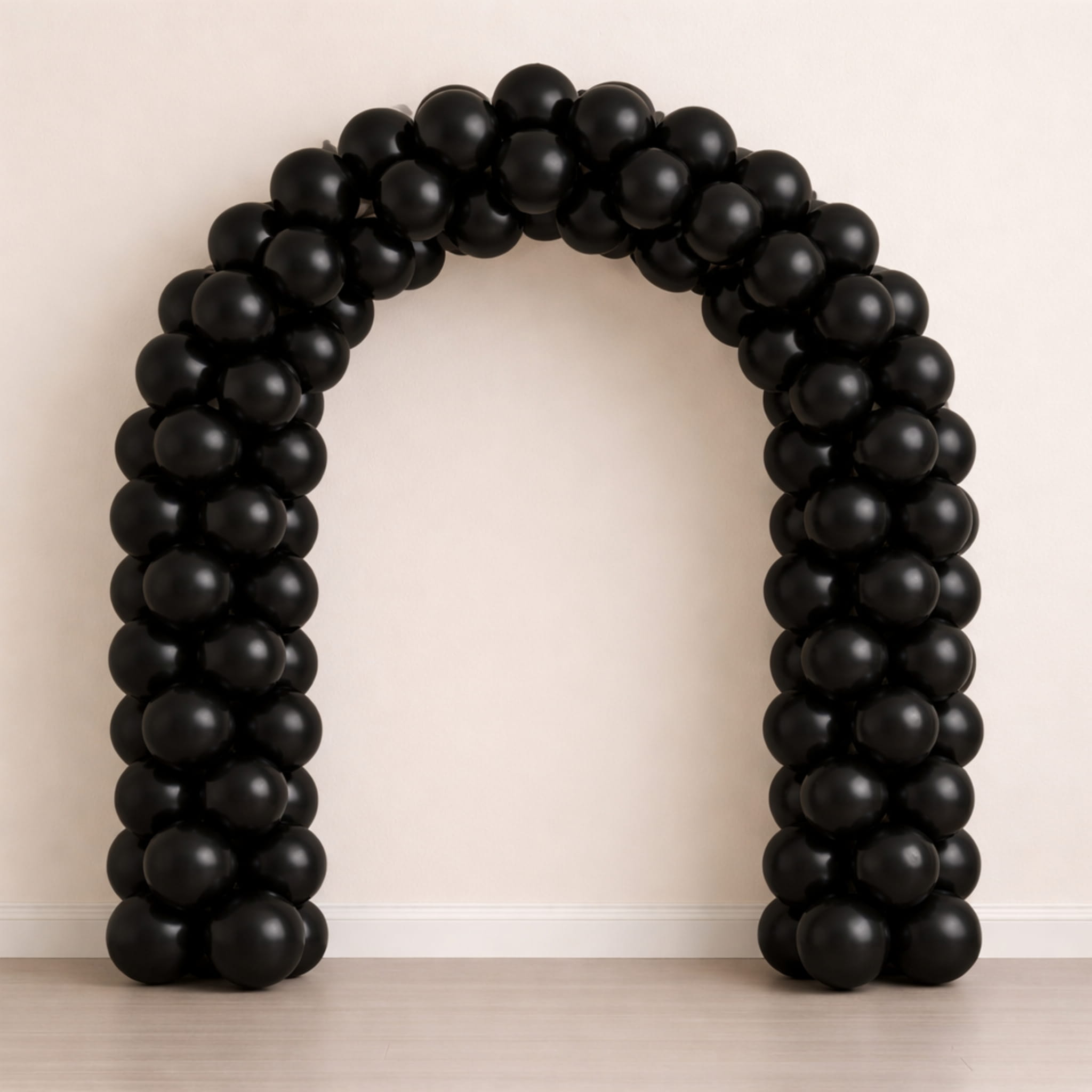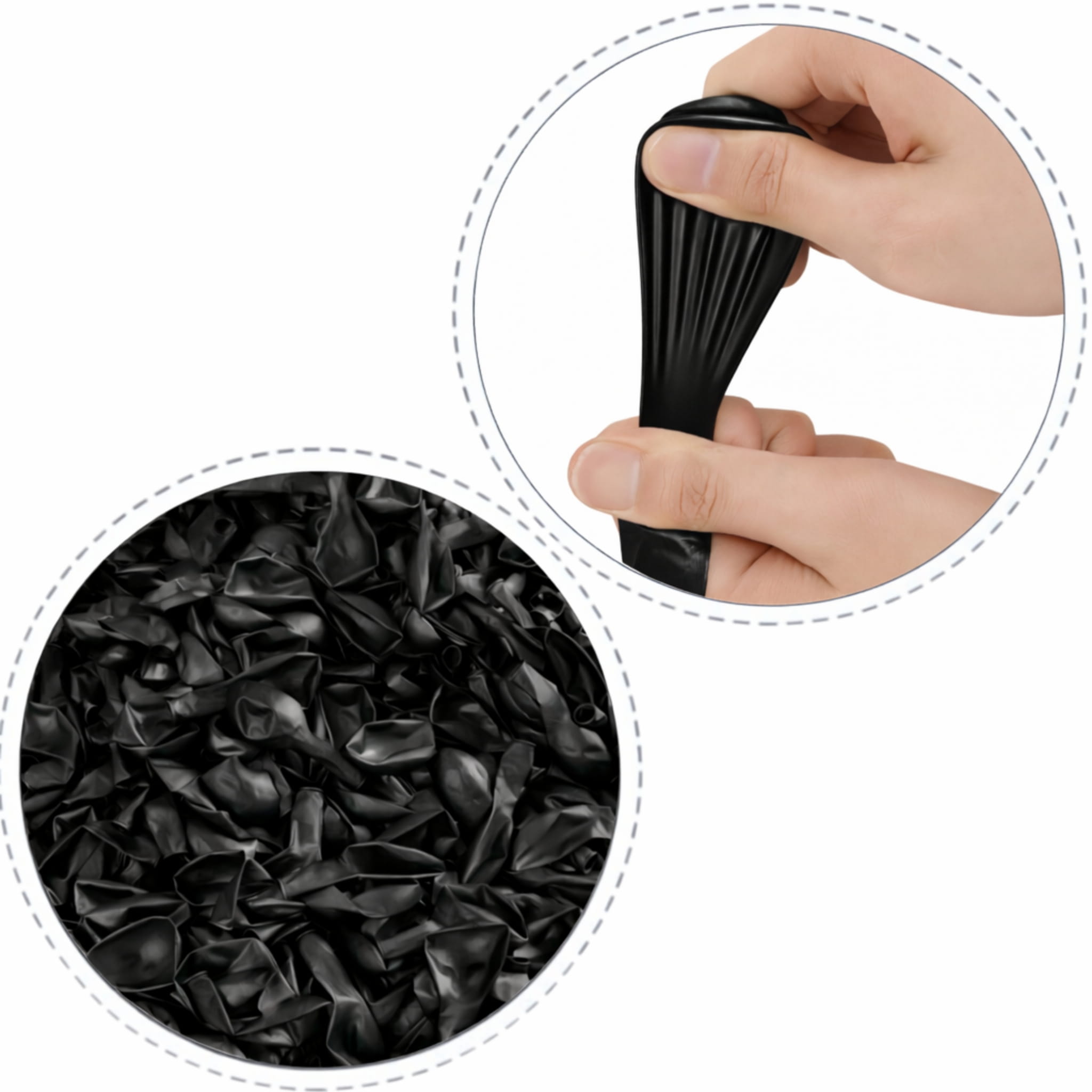 Zestaw 100 matowych balonów lateksowych w kolorze czarnym, rozmiar 26 cm. Do napełniania powietrzem lub helem – idealne do girland, łuków i dekoracji na urodziny lub wesele.