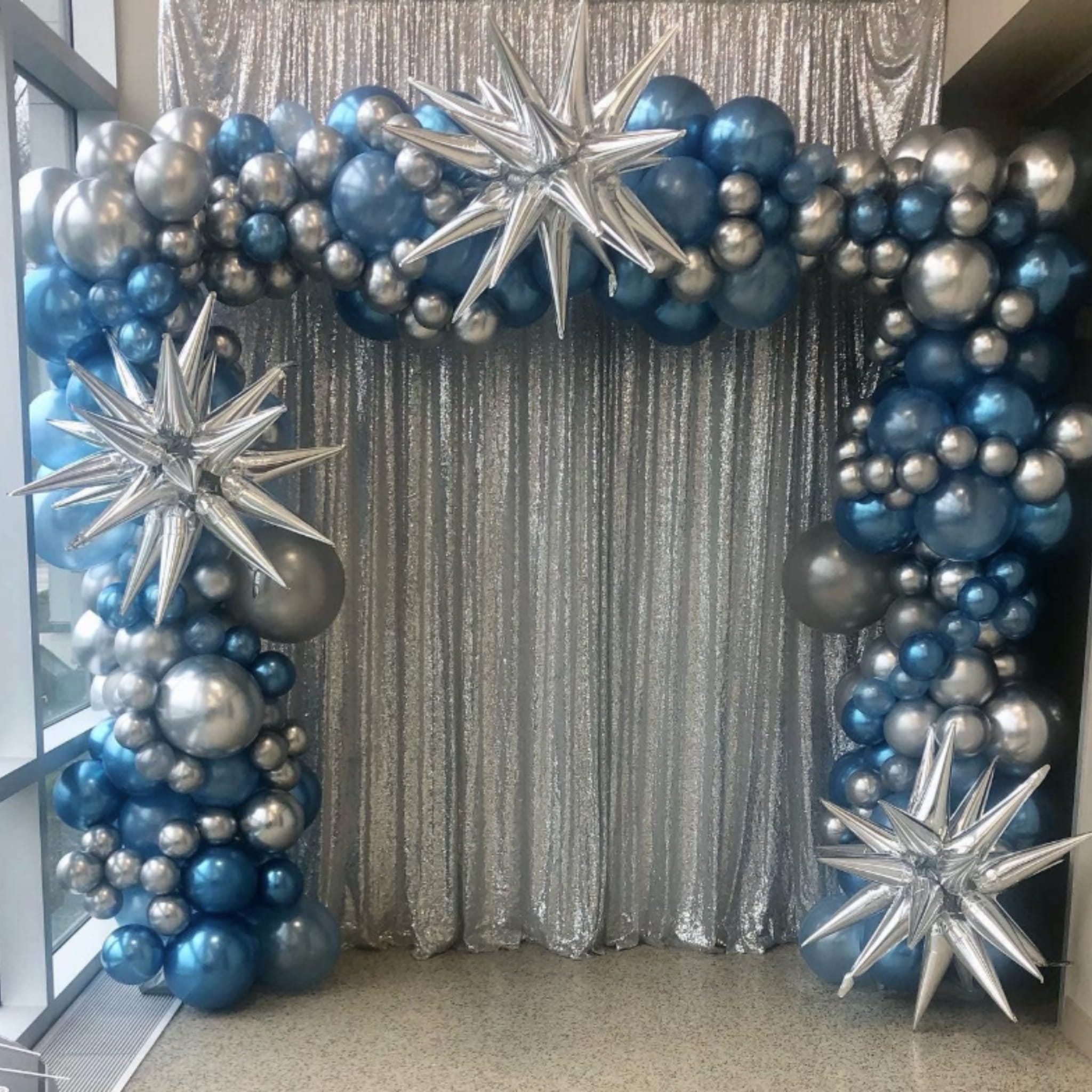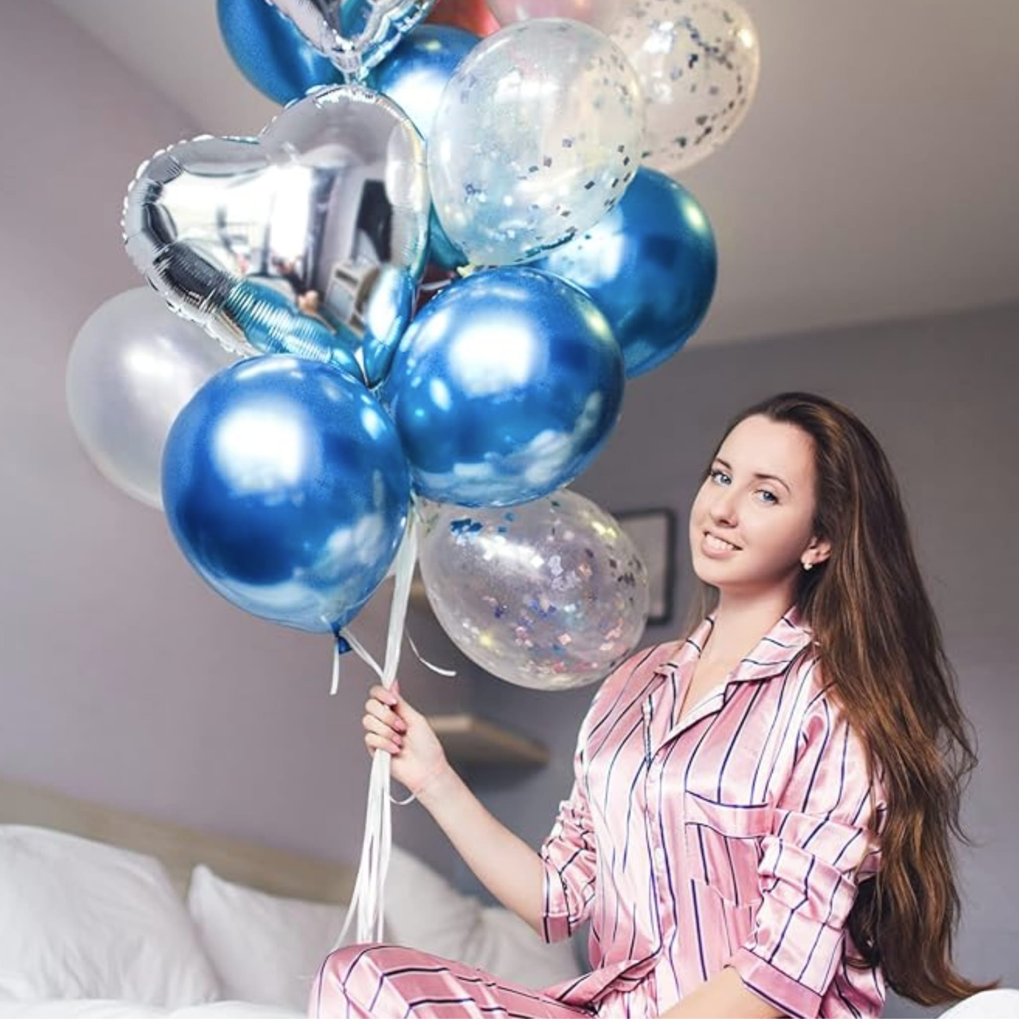 Połącz niebieskie chromowane balony z bielą lub srebrnymi dodatkami, aby uzyskać chłodną, elegancką paletę kolorów. W girlandzie rozłóż balony równomiernie i dodaj kilka akcentów w kontrastowym odcieniu, jeśli chcesz uzyskać bardziej dynamiczny efekt. Przy dekoracji stołu sprawdzą się też dwa bukiety balonowe ustawione symetrycznie po bokach. Dodatki do montażu, takie jak taśmy i kropki klejowe, znajdziesz w kategorii akcesoria do balonów.