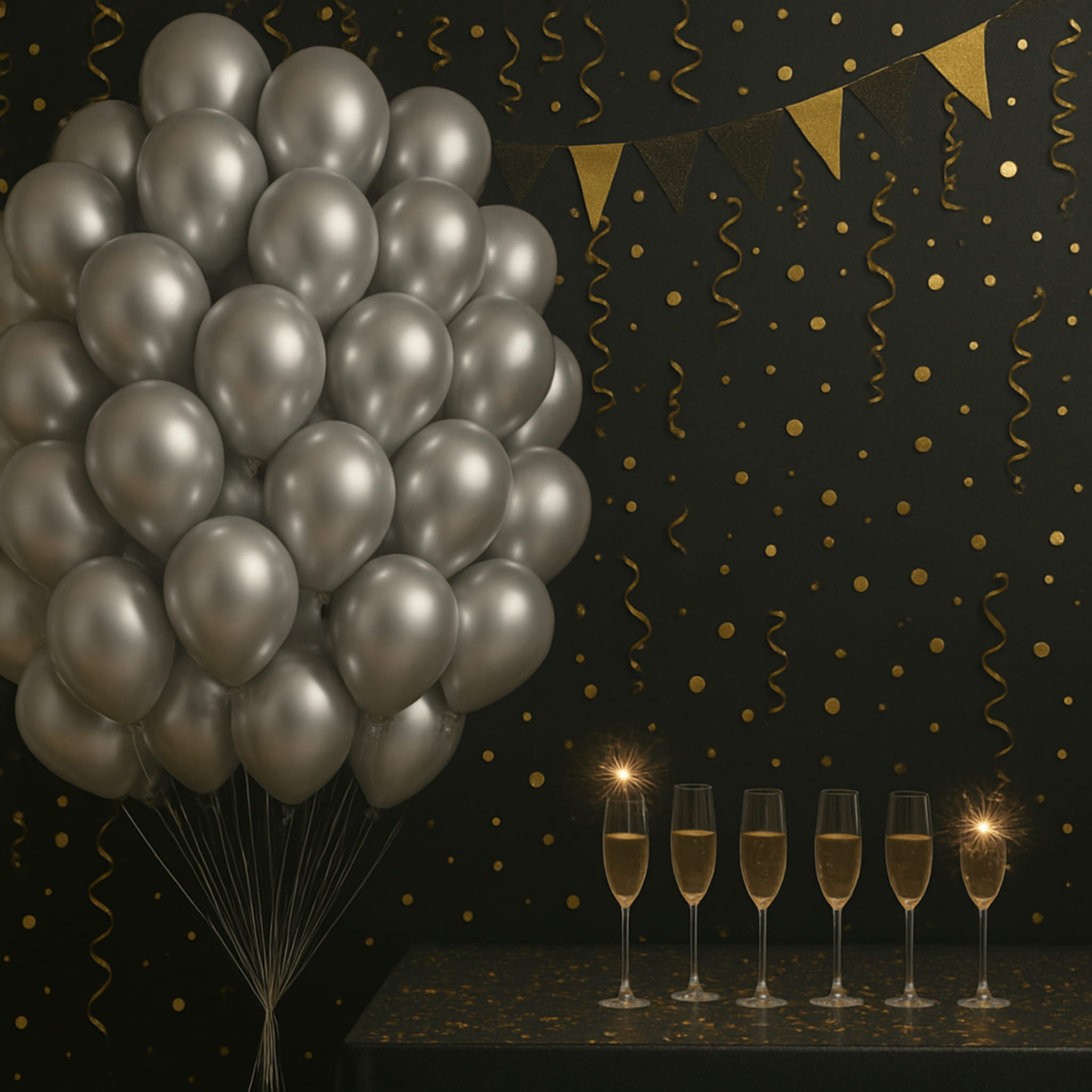 Połącz srebrne chromowane balony z bielą lub czernią, aby uzyskać elegancki, kontrastowy efekt. W girlandzie mieszaj różne odcienie i rozmiary, a połysk srebra zostaw jako element „rozświetlający” całość. Taki zestaw dobrze sprawdza się przy wejściu, nad stołem lub jako tło do zdjęć. Jeśli kompletujesz całą paletę kolorów, zajrzyj do kategorii balony i dobierz dodatki w podobnym stylu.