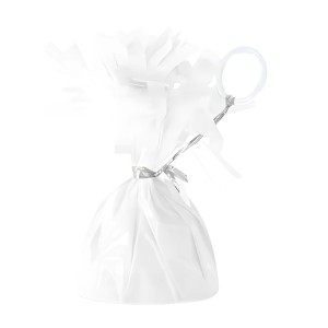 Biały ciężarek do balonów o wadze 140 g z praktycznym oczkiem do mocowania wstążki. Pomaga utrzymać balony lateksowe i foliowe napełnione helem w jednym miejscu. Wymiary ok. Ø 5,5 cm i wys. 8 cm.