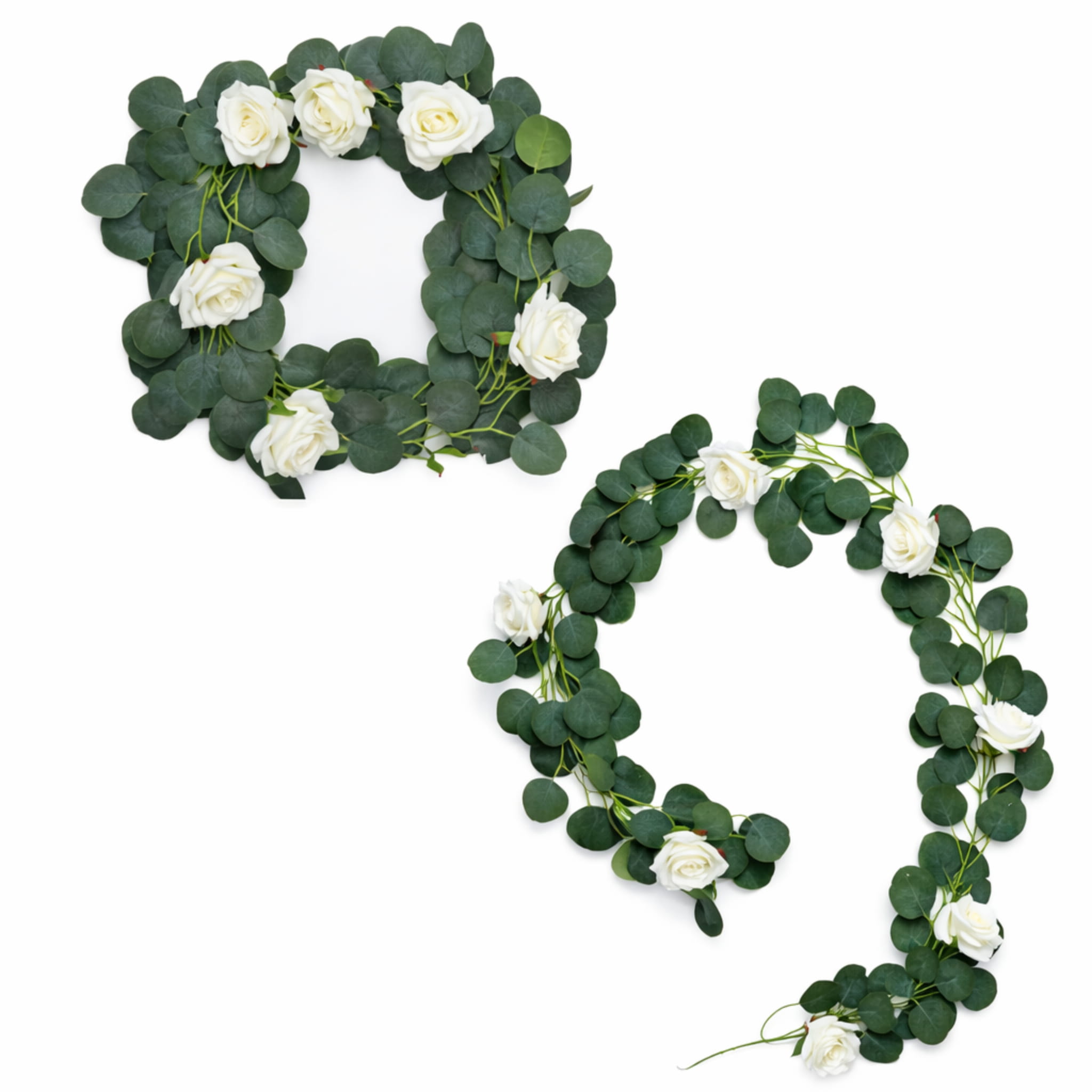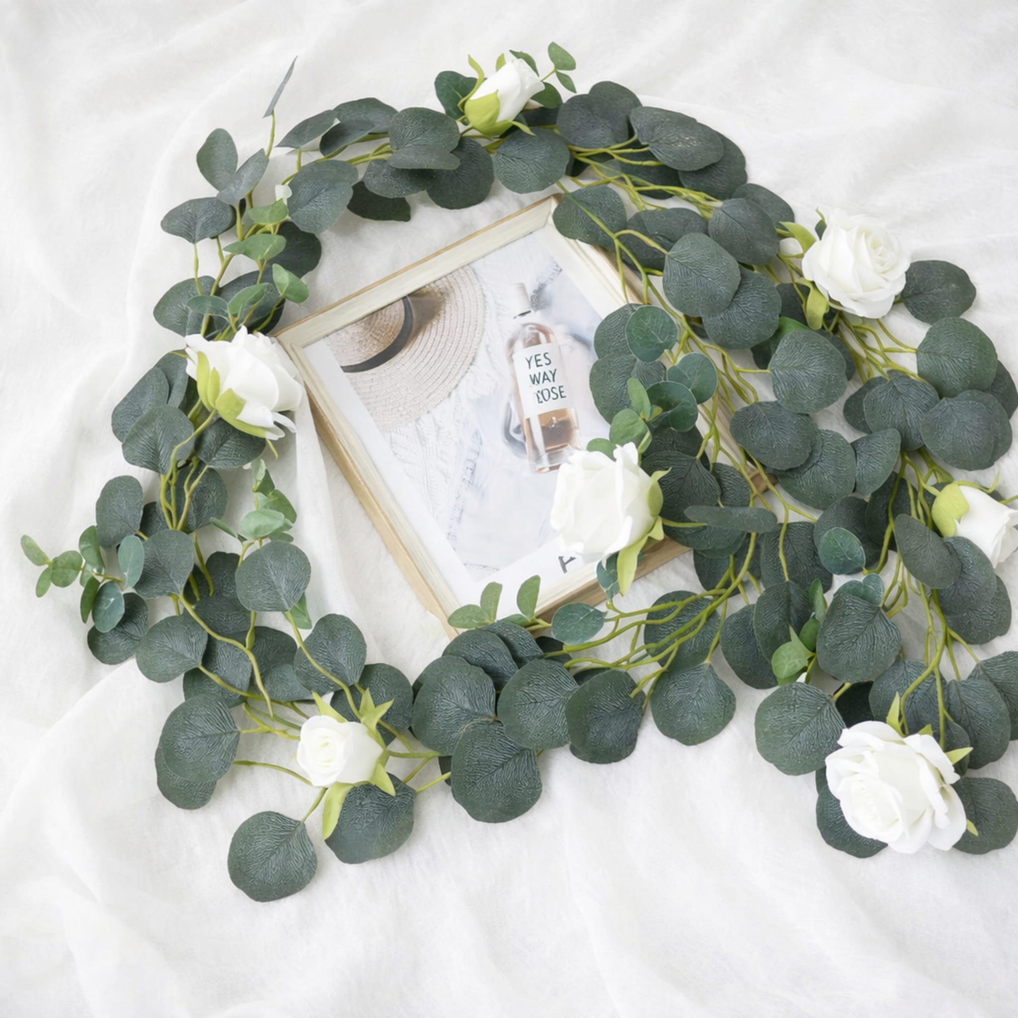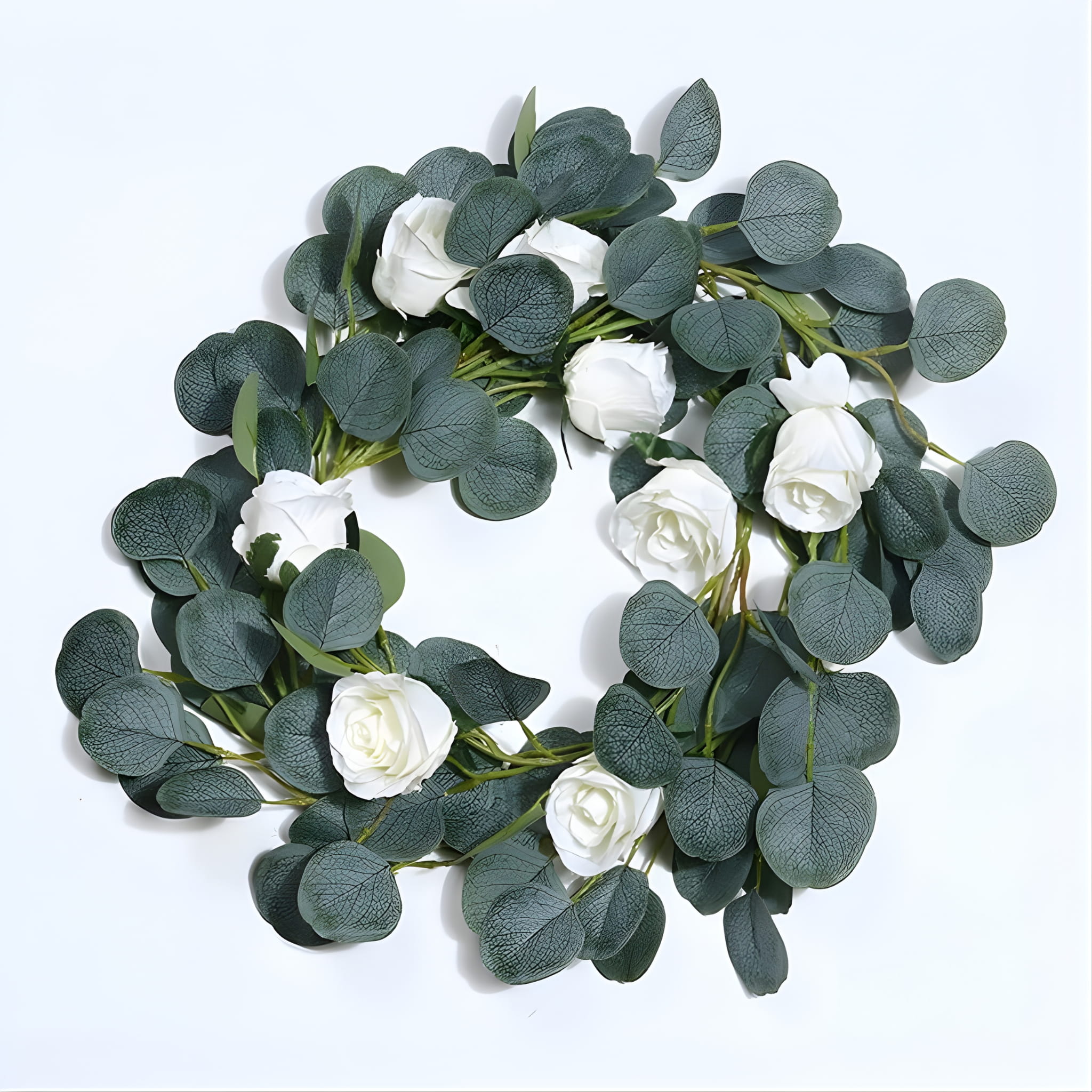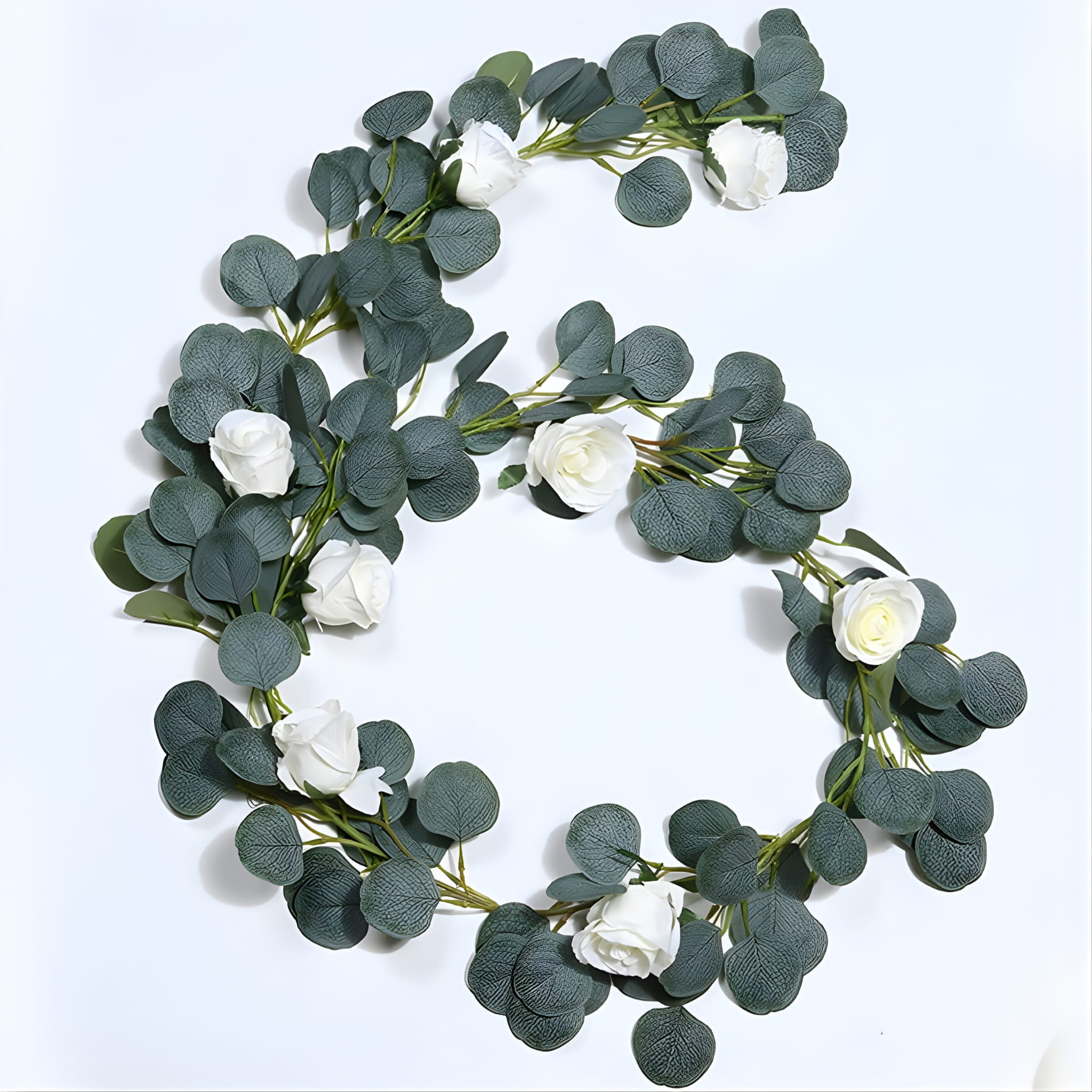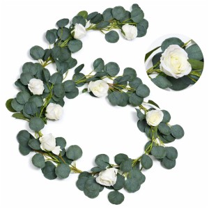 Girlanda sztuczny eukaliptus z białymi różami 190 cm – stroik na ślub i wesele