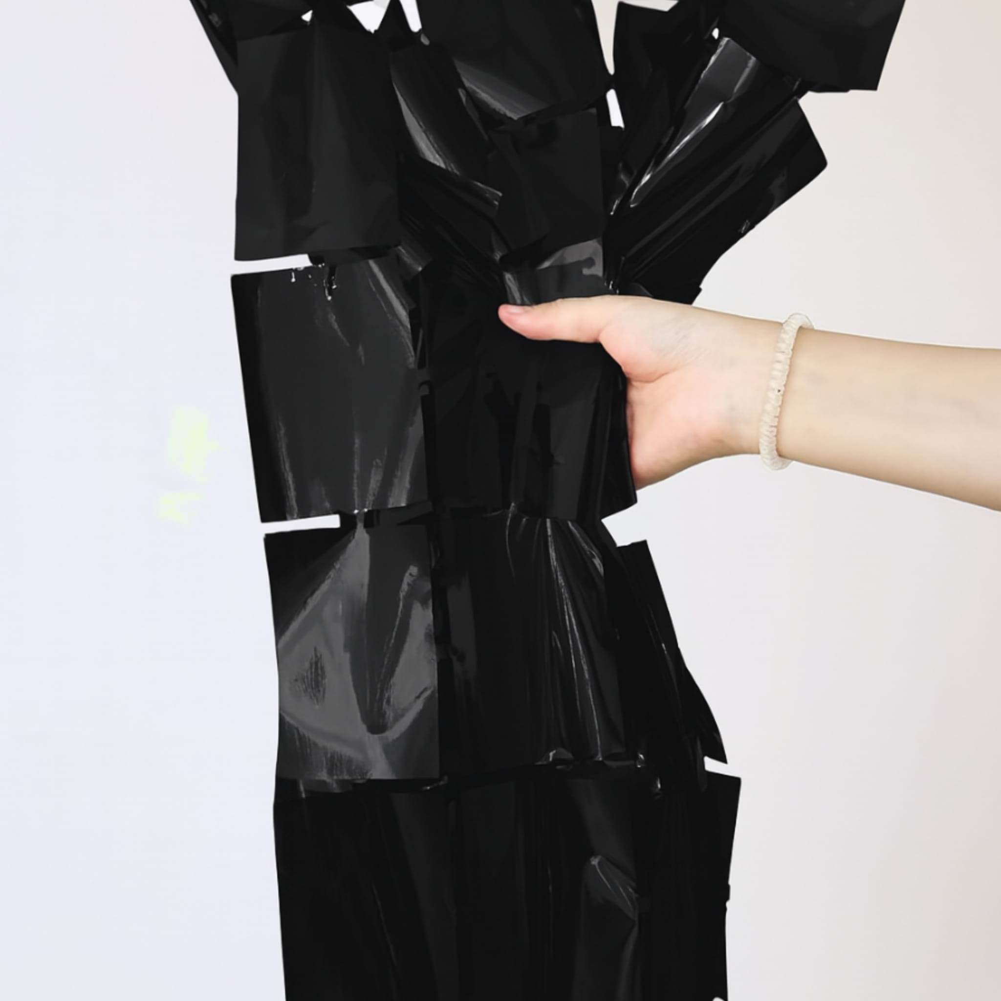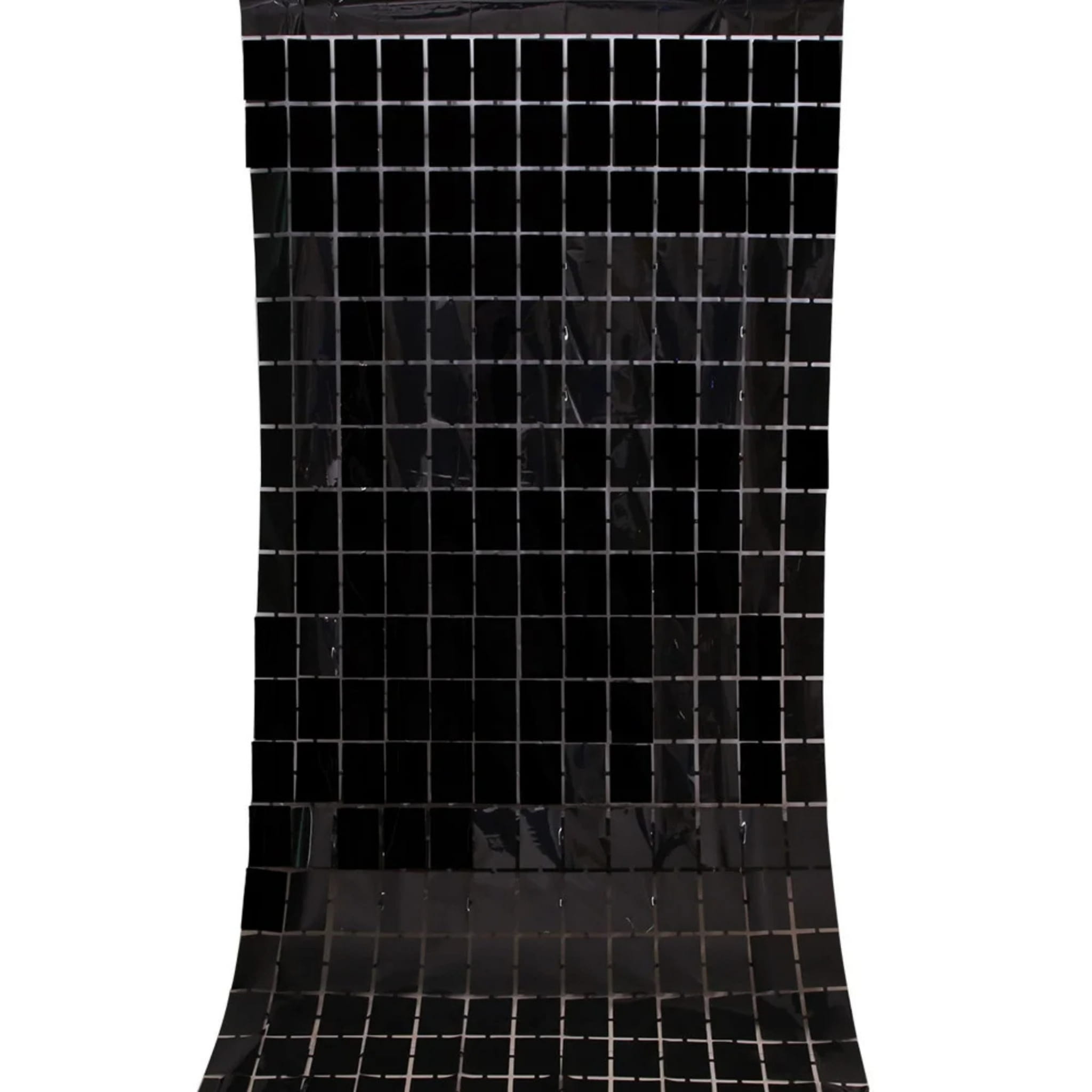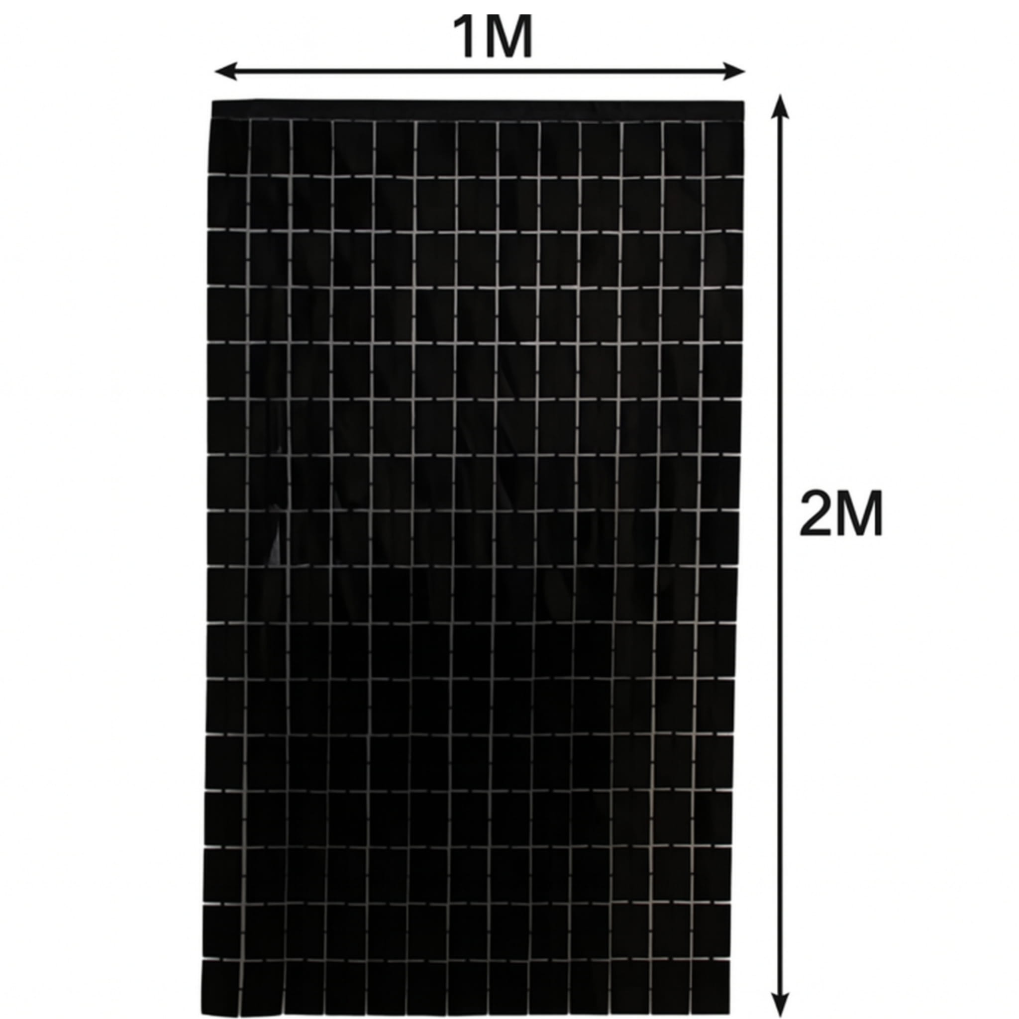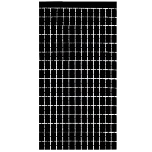 Czarna kurtyna dekoracyjna w formie panelu o wymiarach 200 × 100 cm. Sprawdzi się jako tło do zdjęć, ścianka do fotobudki lub element dekoracji sali.