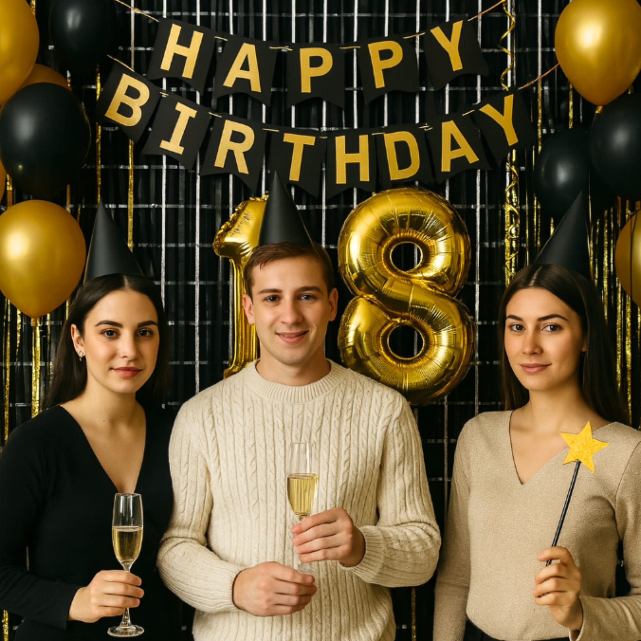Ustaw kurtynę jako tło w miejscu, w którym goście będą robić zdjęcia, a obok dodaj pasujące rekwizyty i dekoracje stołu w kontrastowych kolorach. Przy motywach wieczorowych czarne tło dobrze podkreśla jasne dodatki i oświetlenie. Jeśli chcesz dodać mocny akcent w tej samej strefie, dobierz pasujące produkty w kategorii balony i zbuduj spójną aranżację.