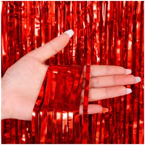 Odpowiedź: 1 sztuka czerwonej metalicznej kurtyny frędzlowej.