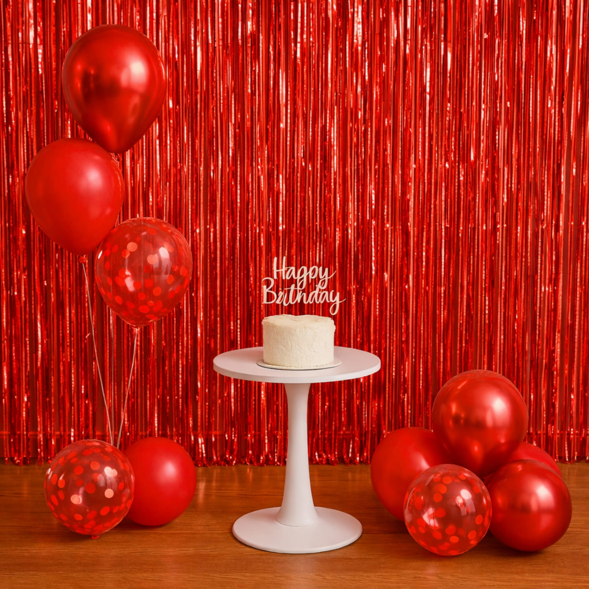 Czerwona metaliczna kurtyna o wymiarach 200 × 100 cm to szybki sposób na efektowne tło do zdjęć i dekorację ściany lub drzwi. W opakowaniu znajduje się 1 sztuka, a montaż wykonujesz samodzielnie.