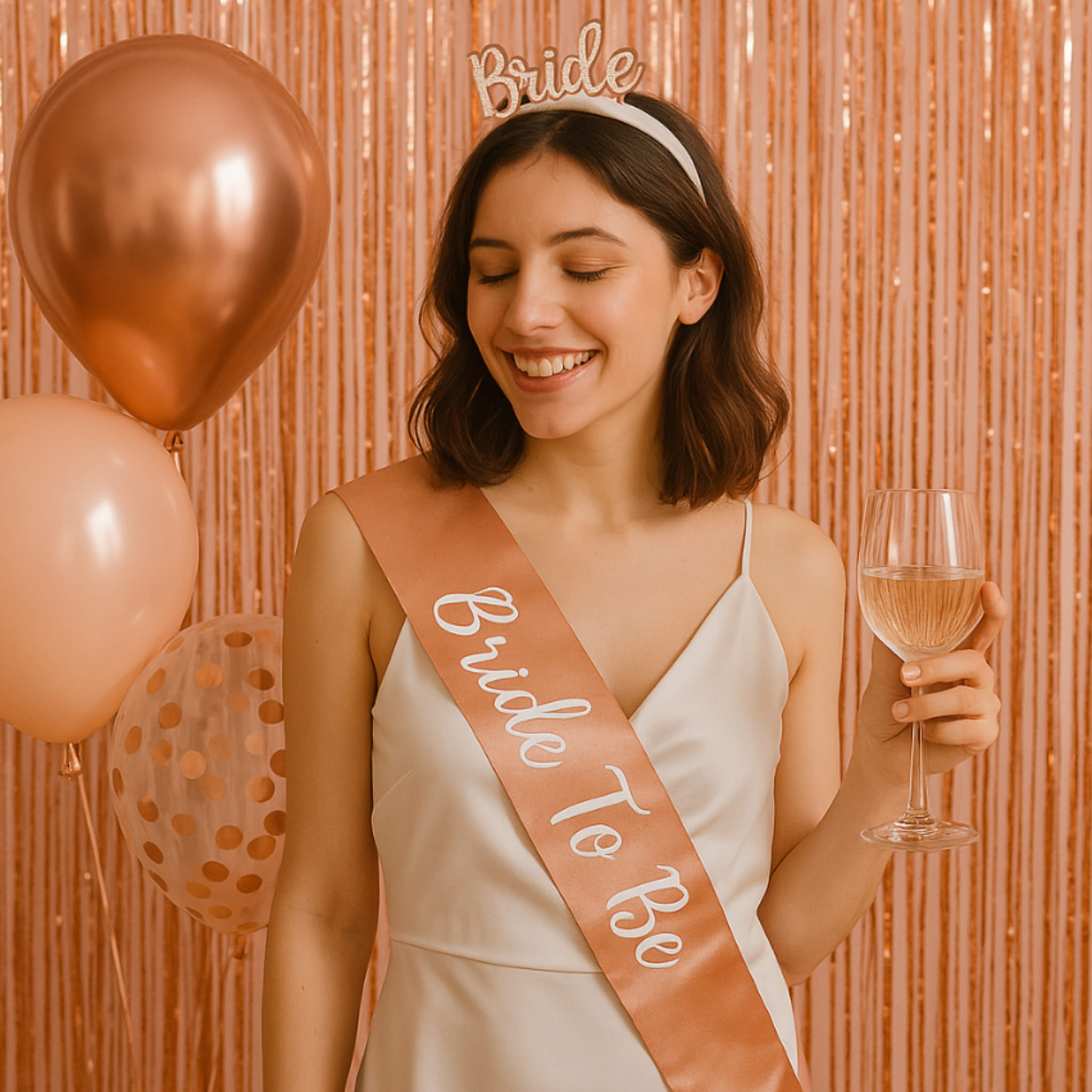 Ustaw kurtynę jako tło w strefie zdjęć, a obok dodaj proste dekoracje stołu w jasnych kolorach, żeby podkreślić odcień różowego złota. Jeśli chcesz wzmocnić efekt w tej samej przestrzeni, dobierz pasujące elementy w kategorii balony i zbuduj spójną aranżację do zdjęć.