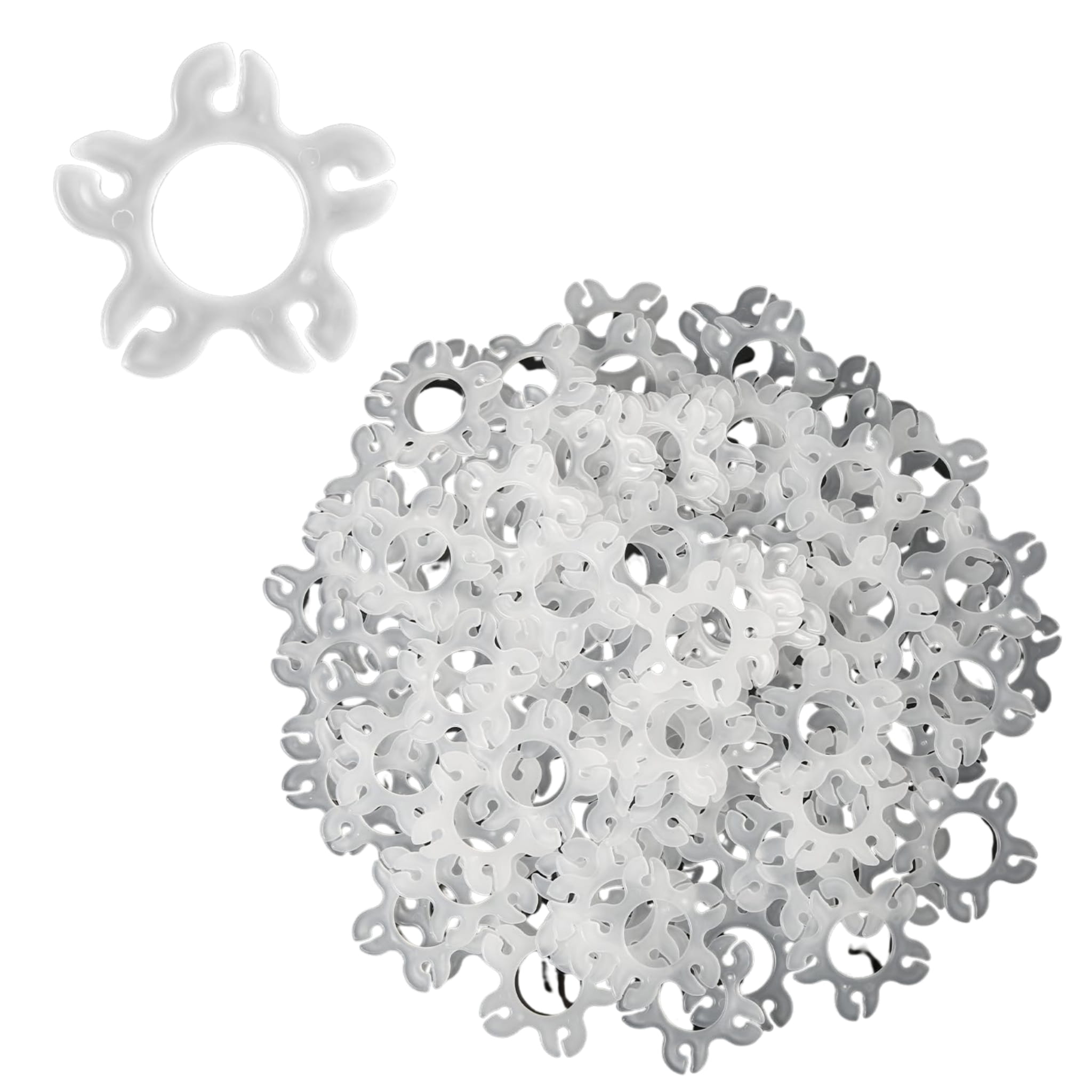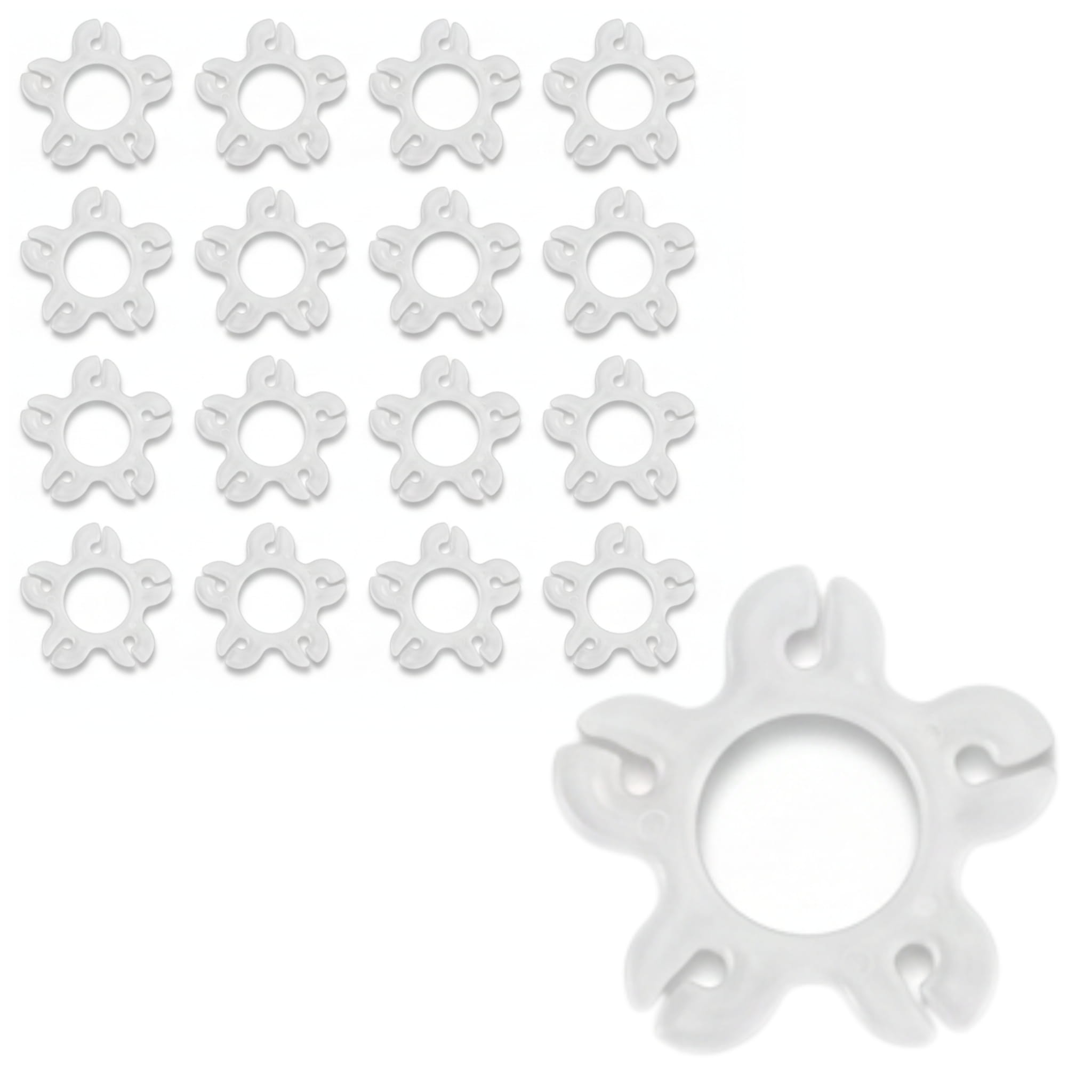 Transparentne łączniki (klipsy) do balonów o wymiarach 4,5 × 4,5 cm. W opakowaniu 20 sztuk – do łączenia balonów i tworzenia girland oraz dekoracji balonowych.