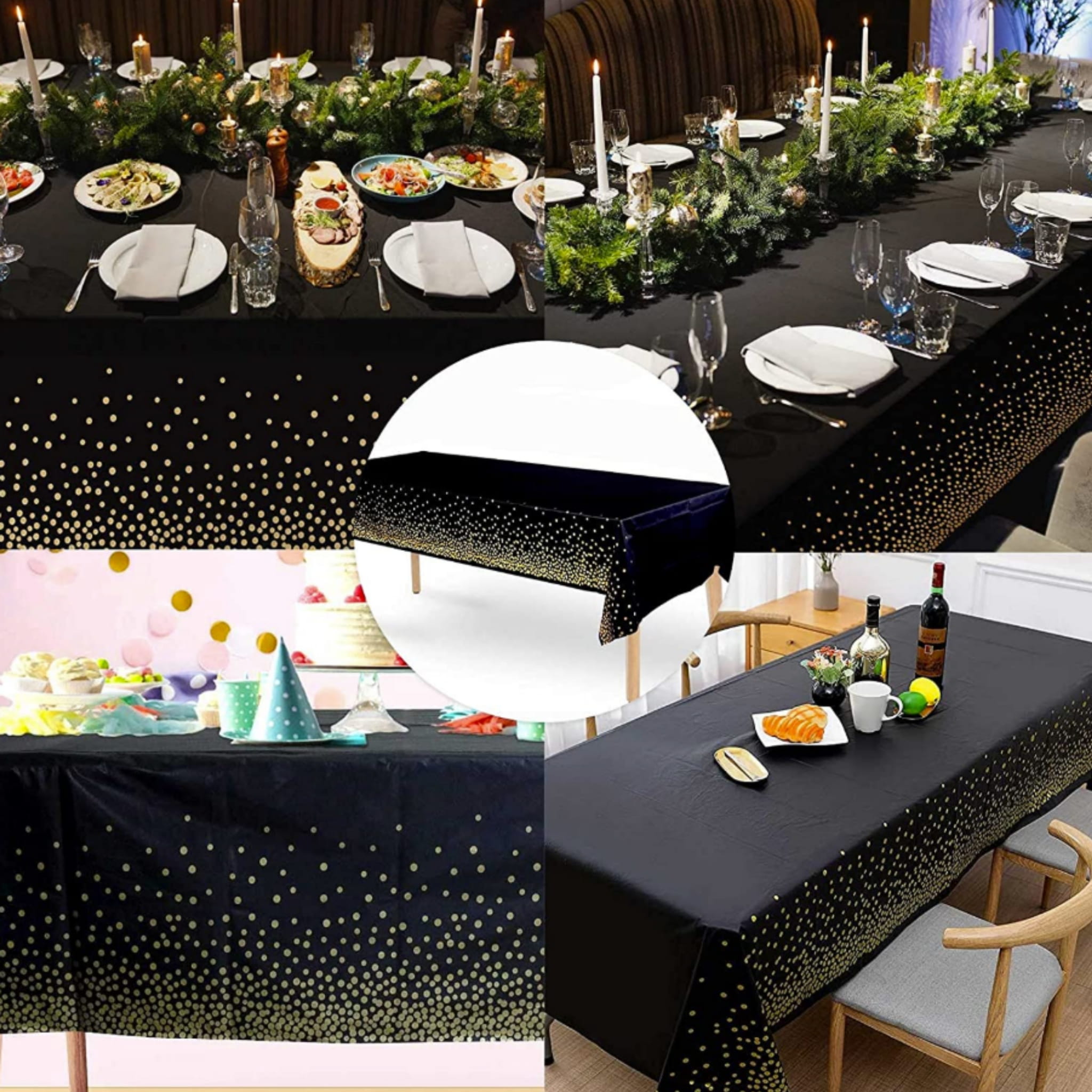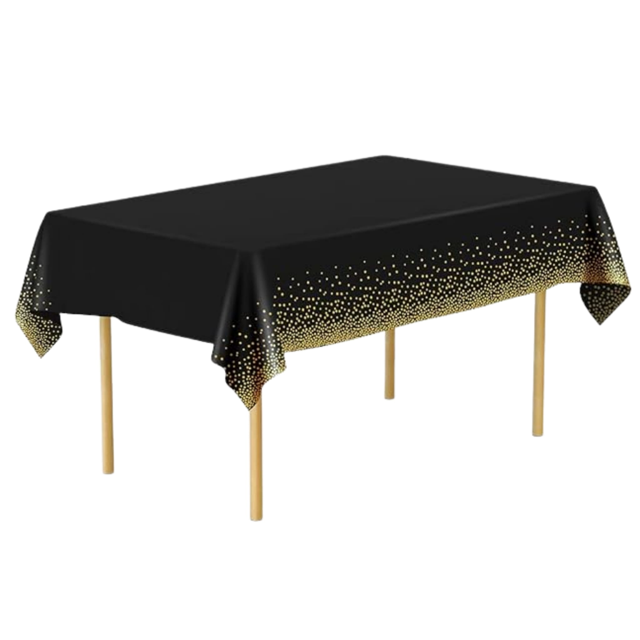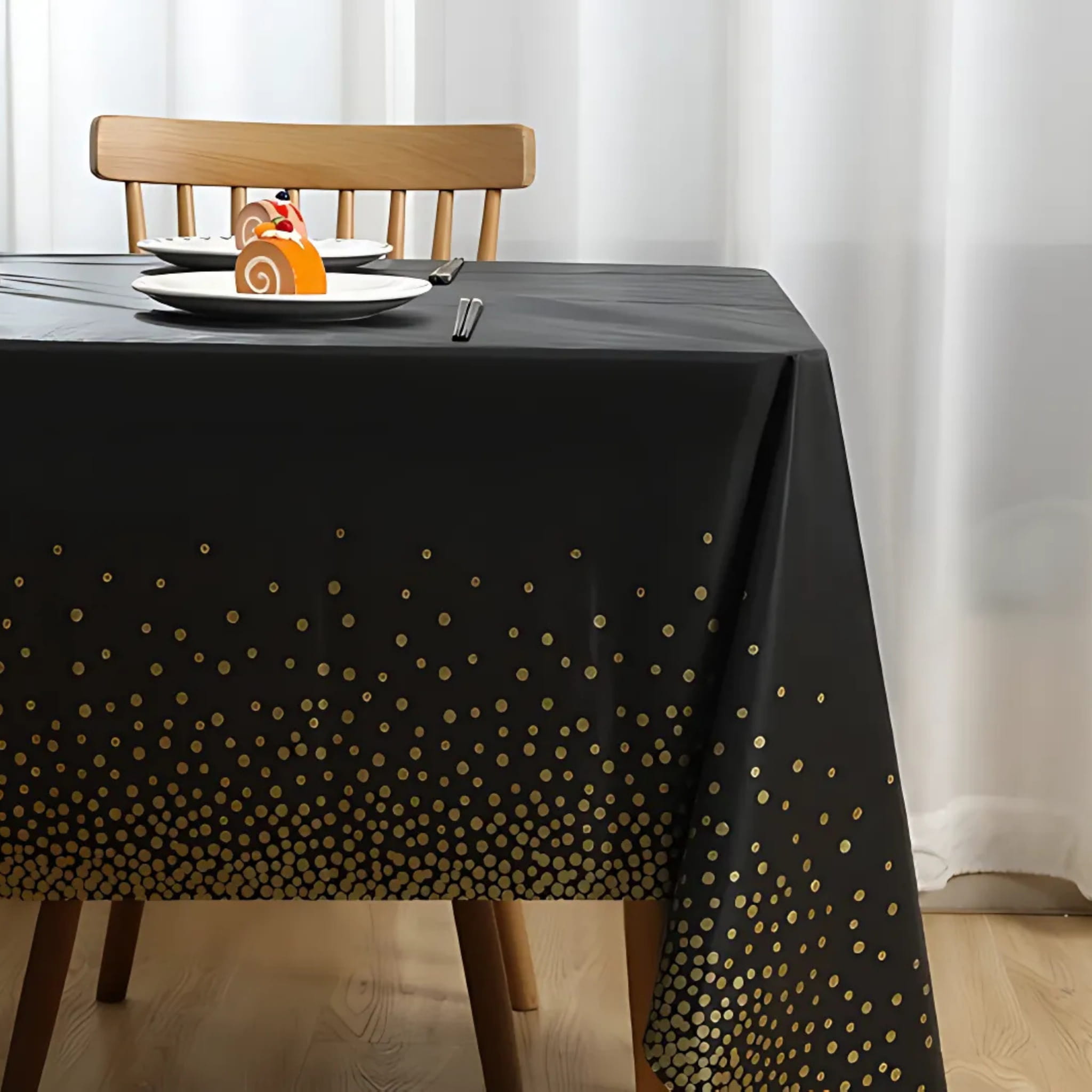 Obrus foliowy czarny w złote kropki 137 × 274 cm