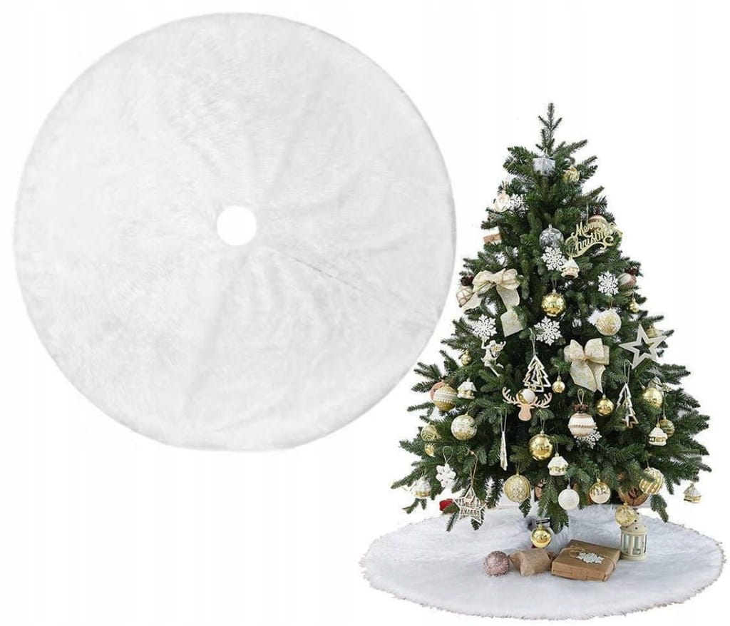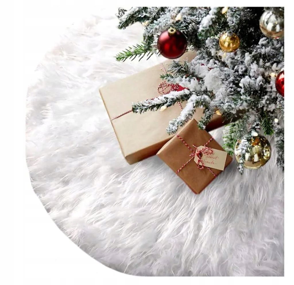 DYWANIK POD CHOINKĘ BIAŁY MATA FUTERKO DYWAN NA PREZENTY 90 cm OKRĄGŁY DUŻY