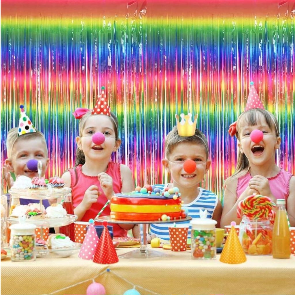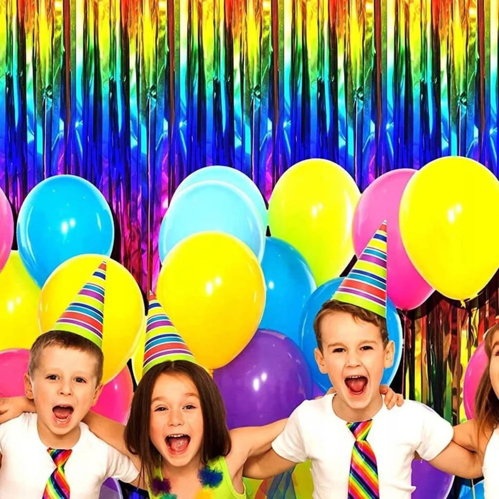 Dzięki tęczowej bazie, kurtynę łatwo można dostosować do różnych palet kolorystycznych, co pozwala na swobodne komponowanie dekoracji z innymi elementami wystroju imprezy m. in. takimi jak balony.