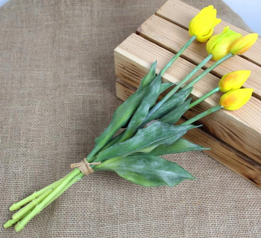 ➡️Bukiet 8 sztuk żółtych tulipanów silikonowych (3 główki otwarte, 5 pąków)