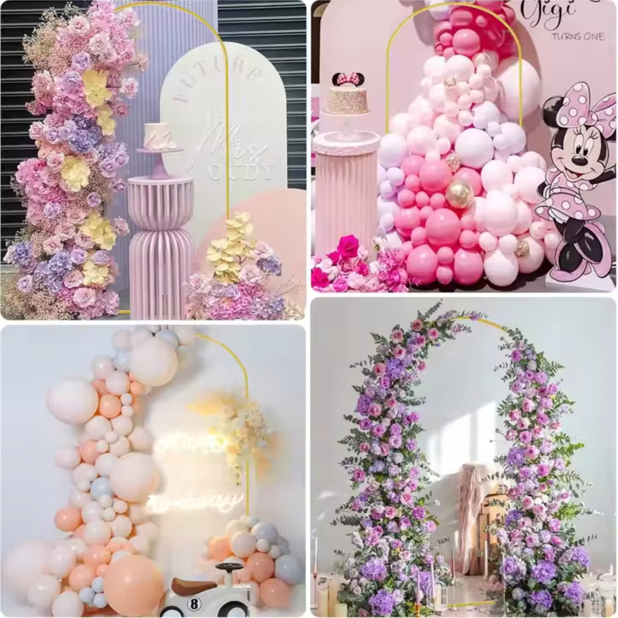 Złoty stelaż dekoracyjny w formie łuku/bramy to mocna, estetyczna podstawa pod efektowne aranżacje na sali i w plenerze. Wymiary 200 x 100 cm pomagają zbudować wyraźny punkt centralny: wejście dla gości, tło za stołem lub ściankę do zdjęć. Metalowa konstrukcja sprawdza się jako szkielet dla girland balonowych, kwiatów i tkanin. Stelaż jest składany, co ułatwia przechowywanie i transport. Złoty kolor pasuje do dekoracji w stylu glamour oraz do eleganckich przyjęć.