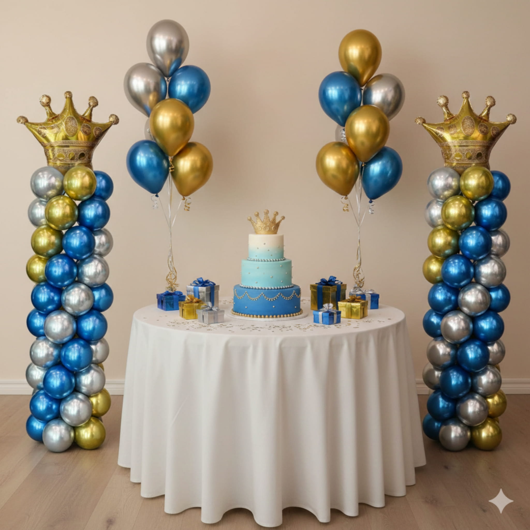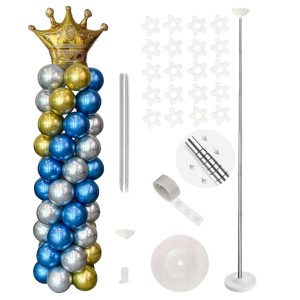Teleskopowy stojak na balony o wysokości do 200 cm ułatwia przygotowanie dekoracji w formie kolumny balonowej lub elementu tła do zdjęć. Regulacja wysokości pozwala dopasować konstrukcję do miejsca i planu aranżacji. Podstawę można dociążyć, napełniając ją wodą, co pomaga w stabilnym ustawieniu dekoracji. W komplecie znajdują się też praktyczne akcesoria: taśma do balonów oraz kropki kleju, które usprawniają montaż kompozycji.