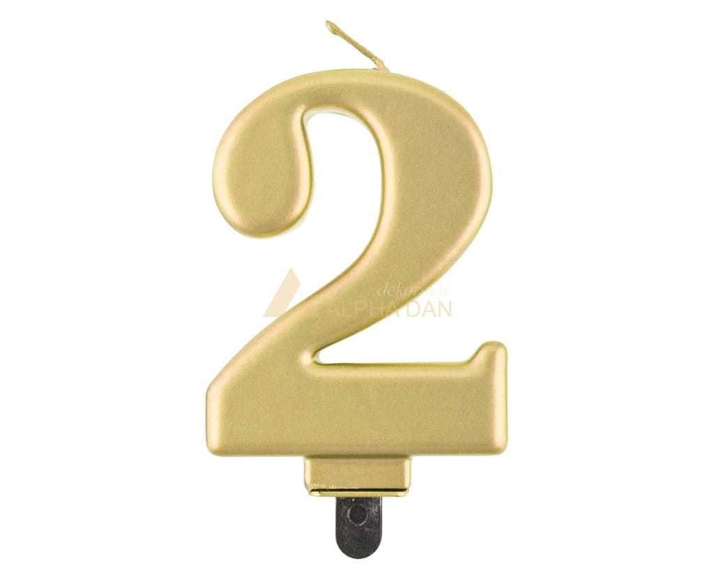Świeczka urodzinowa cyfra 2 złota metaliczna