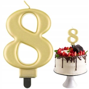 Świeczka urodzinowa cyfra 8 złota metaliczna