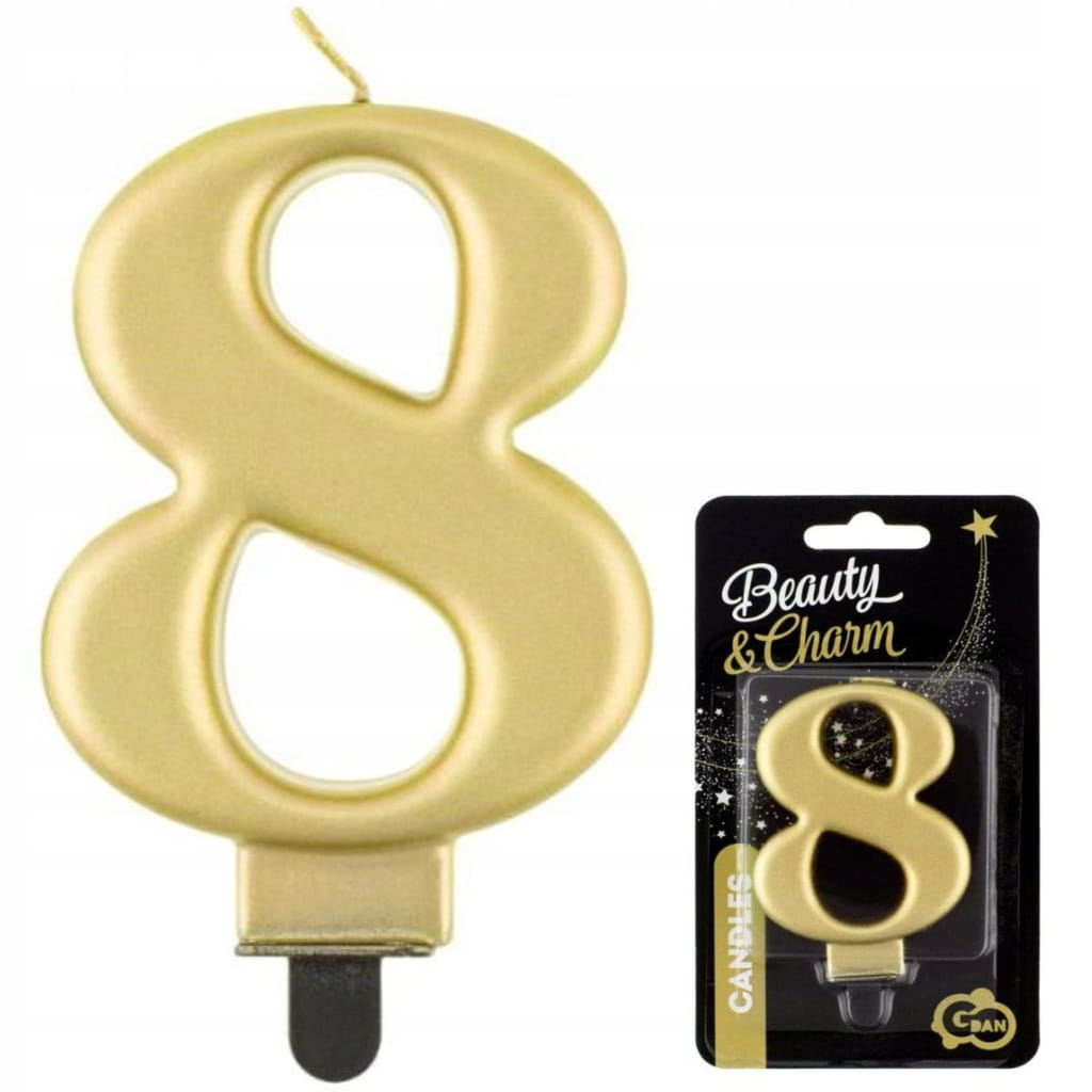 Połącz cyfrę 8 z pozostałymi świeczkami w tym samym stylu, aby stworzyć wiek lub datę, a całość dopasuj do złotych dodatków na słodkim stole. Przy stylu glamour dobrze sprawdzają się kontrasty (złoto + biel lub złoto + czerń), które podkreślają metaliczne wykończenie na zdjęciach. Jeśli tort ma minimalistyczny wygląd, sama świeczka może być głównym akcentem dekoracyjnym. Więcej dodatków do wypieków znajdziesz w dziale dekoracje tortu.