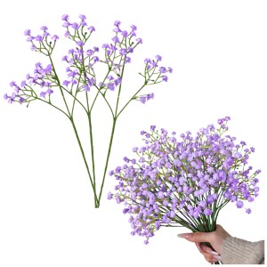 Zestaw 3 sztucznych gałązek gipsówki w kolorze lawendowym o wysokości ok. 28 cm. Do bukietów, stroików, kompozycji florystycznych i dekoracji okolicznościowych.