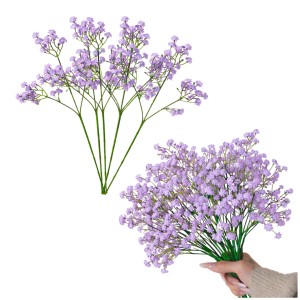 Zestaw 6 sztucznych gałązek gipsówki w kolorze lawendowym o wysokości ok. 28 cm. Do bukietów, stroików, kompozycji florystycznych i dekoracji okolicznościowych.