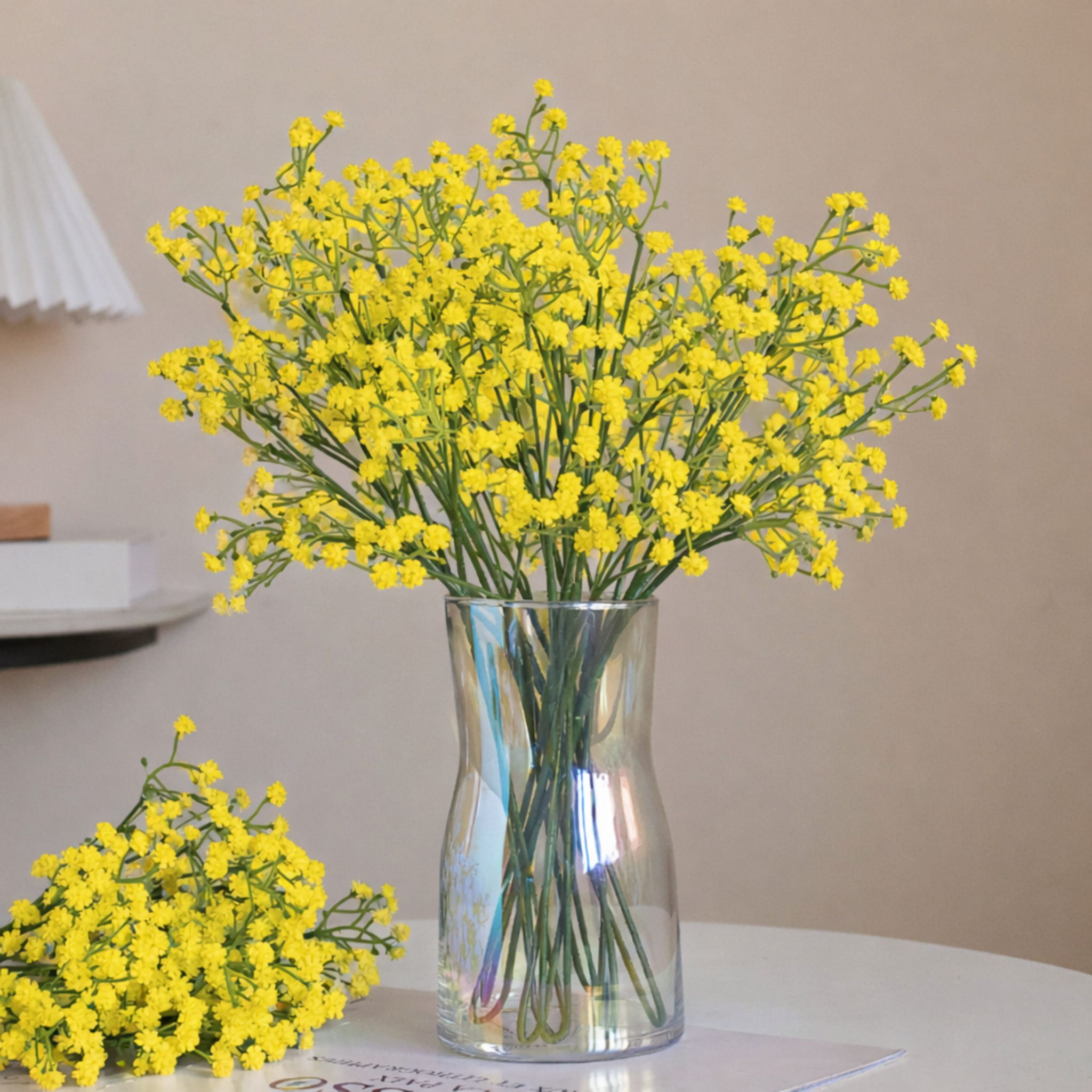 Wykorzystaj żółtą gipsówkę jako wypełnienie bukietu lub stroika: połącz ją z bielą i zielenią, aby uzyskać świeży kontrast. Do dekoracji stołu możesz wstawić jedną gałązkę do małego wazonu, a pozostałe rozdzielić między kompozycje przy świecach lub winietkach. Żółty akcent dobrze sprawdza się także w boxach i wiankach, gdzie dodaje objętości bez „ciężkiego” efektu. Jeśli kompletujesz elementy do aranżacji, sprawdź sztuczne kwiaty.