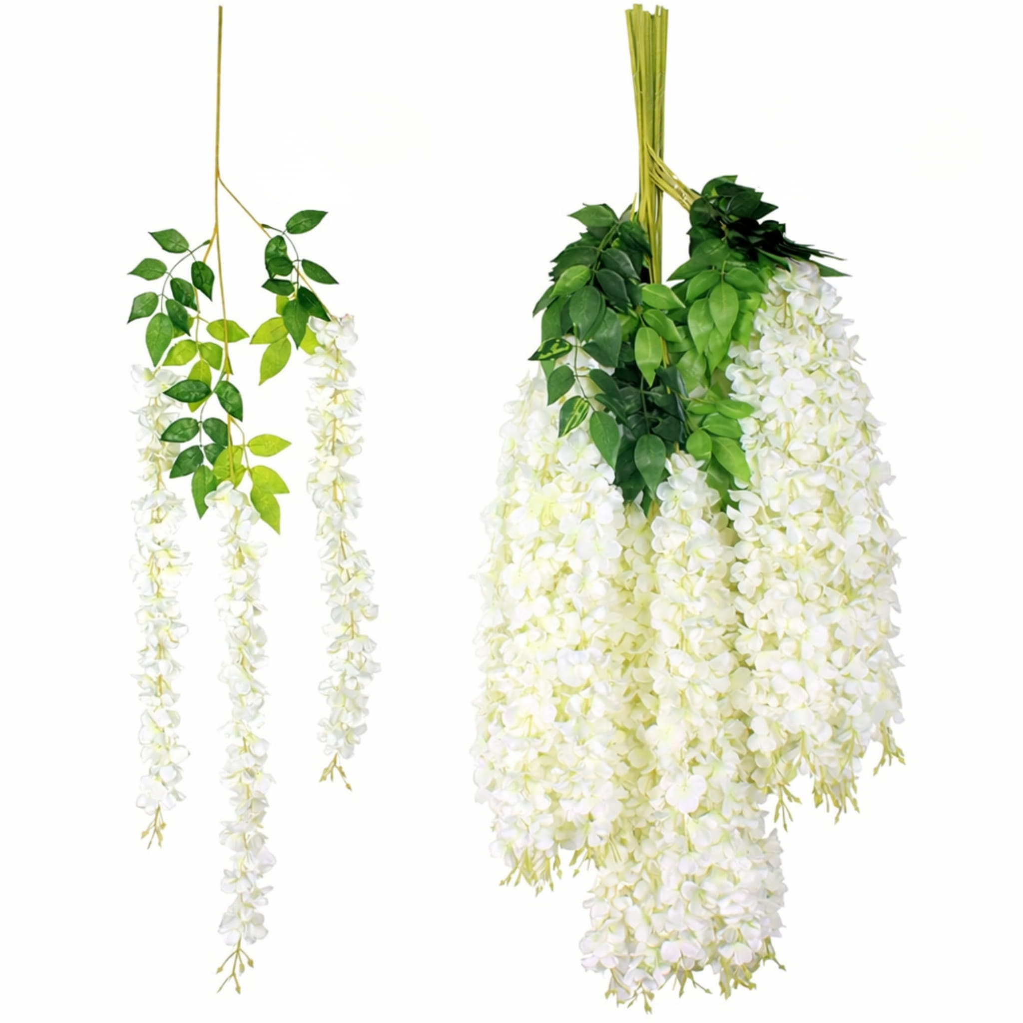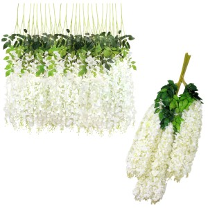 Sztuczna wisteria biała girlanda glicynia 105 cm, zestaw 12 szt.