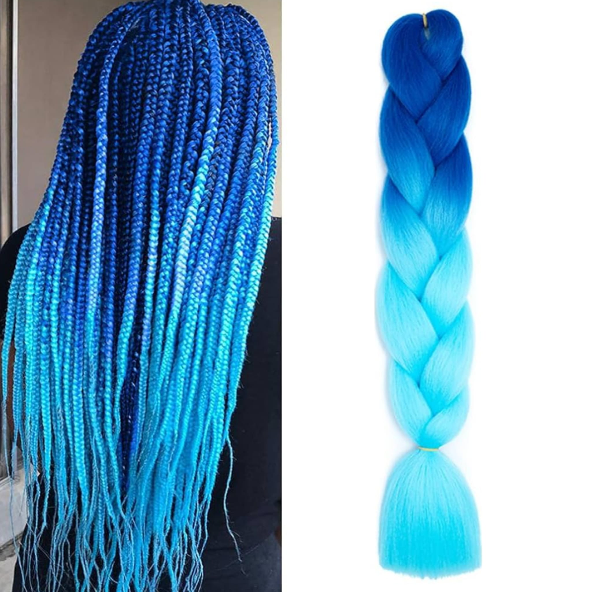 Włosy Syntetyczne do warkoczyków ombre niebieskie 120 cm