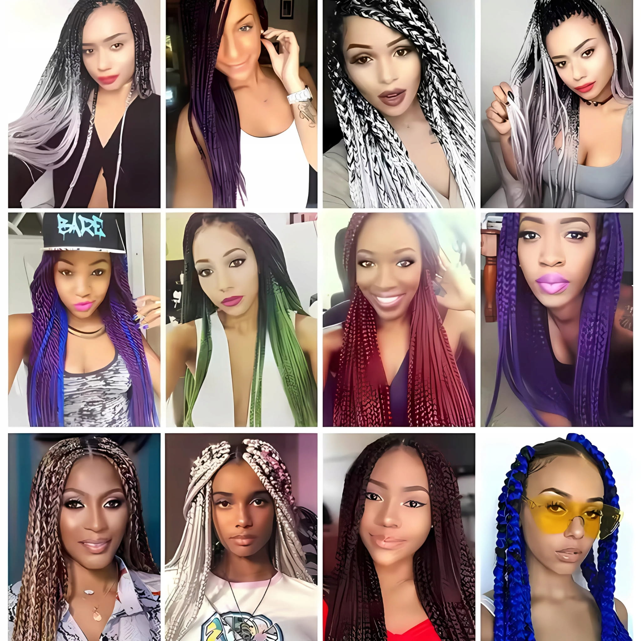 Niebieskie ombre najlepiej prezentuje się w splotach, które eksponują przejście kolorów — spróbuj warkoczy bokserskich albo jednego grubszego warkocza. Jeśli chcesz mocniejszy efekt, użyj dwóch pasm i rozłóż je symetrycznie, aby kolor był widoczny po obu stronach. Przy delikatniejszej stylizacji wpleć pasmo tylko jako akcent przy twarzy lub w cienki warkoczyk. Zobacz również inne włosy syntetyczne, aby dobrać kolejne warianty do zaplatania.