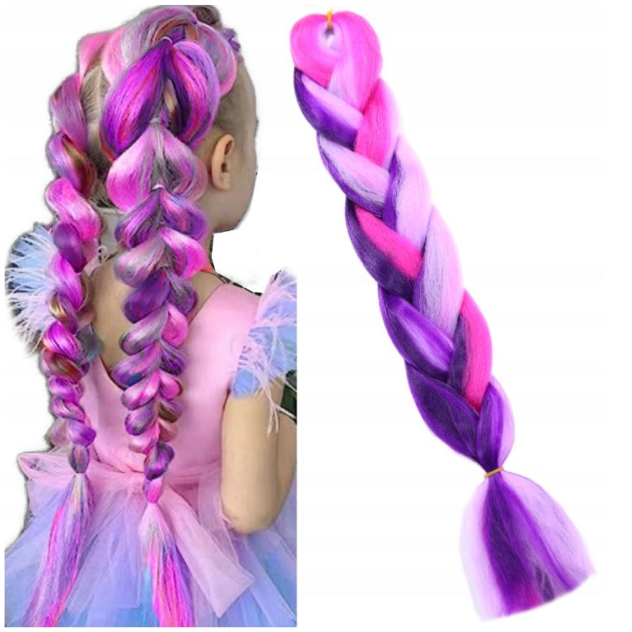 Luźne pasmo włosów syntetycznych do zaplatania w warkoczyki w kolorystyce ombre kolorowe. Długość 120 cm, 1 sztuka w opakowaniu, waga ok. 0,1 kg.