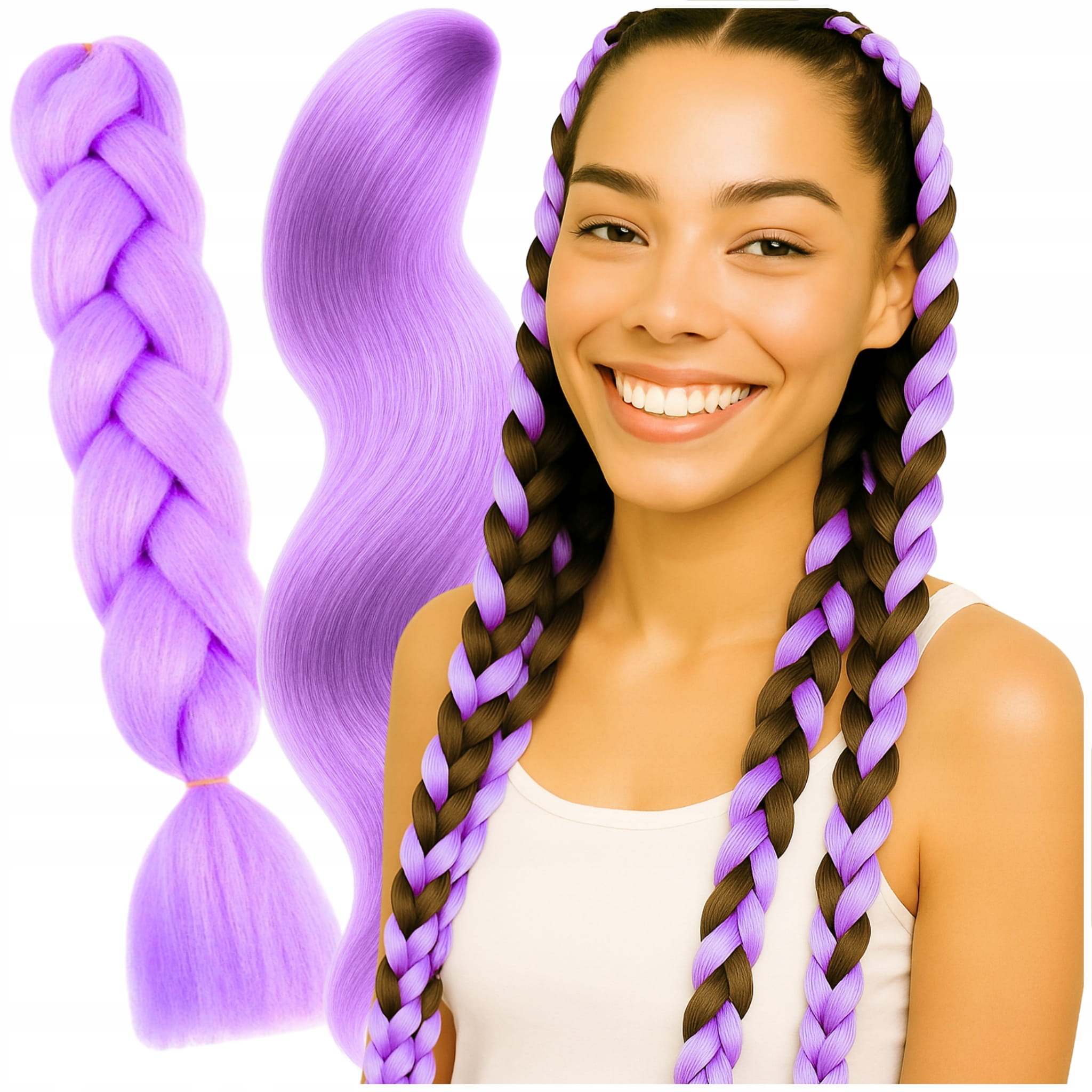 - Luźne pasma przeznaczone do samodzielnego zaplatania i dopasowania fryzury.