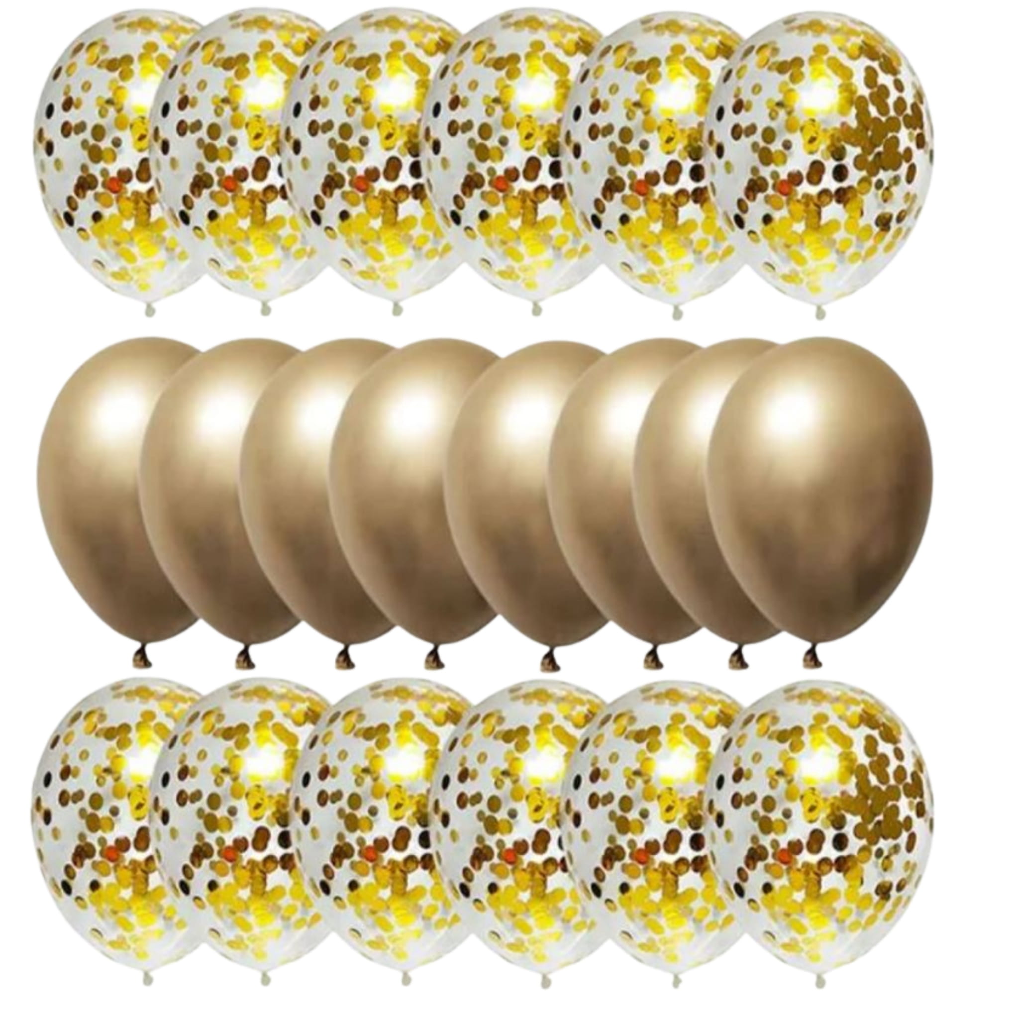 - Kompletny zestaw 23 sztuk mix balonów: konfetti, złote oraz białe perłowe z nadrukiem.