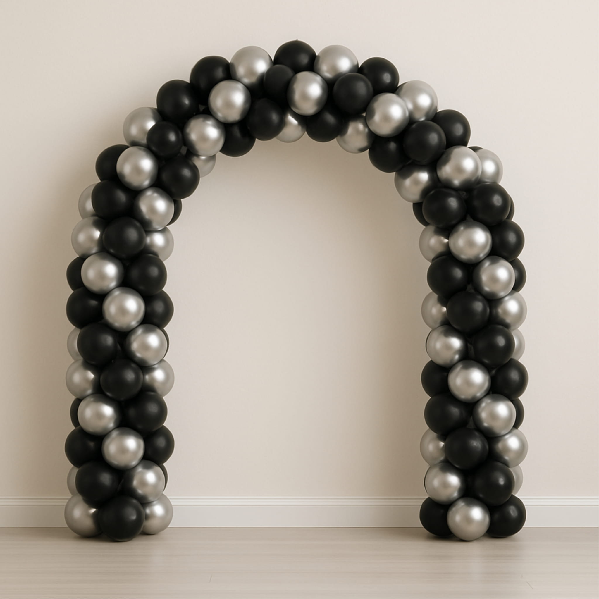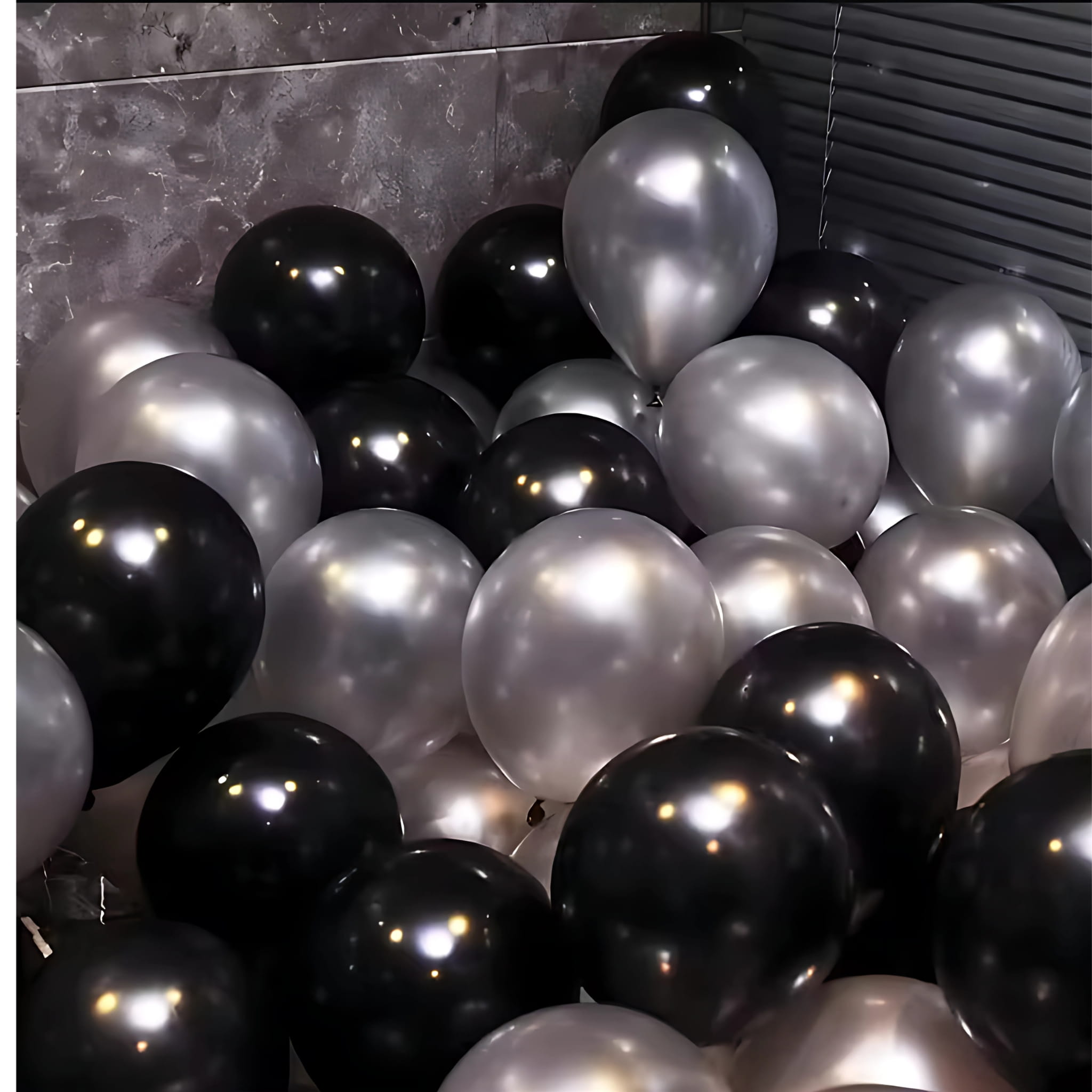 Czarno-srebrny zestaw balonów lateksowych to praktyczna baza do przygotowania dekoracji na przyjęcia w eleganckiej kolorystyce. W opakowaniu znajduje się 100 balonów o rozmiarze 12 cali (ok. 30 cm), dzięki czemu kompozycja jest dobrze widoczna w przestrzeni. Połączenie czerni w macie i srebra w chromie daje wyraźny kontrast oraz efekt połysku. Balony można napełniać powietrzem lub helem, zależnie od planowanej aranżacji.