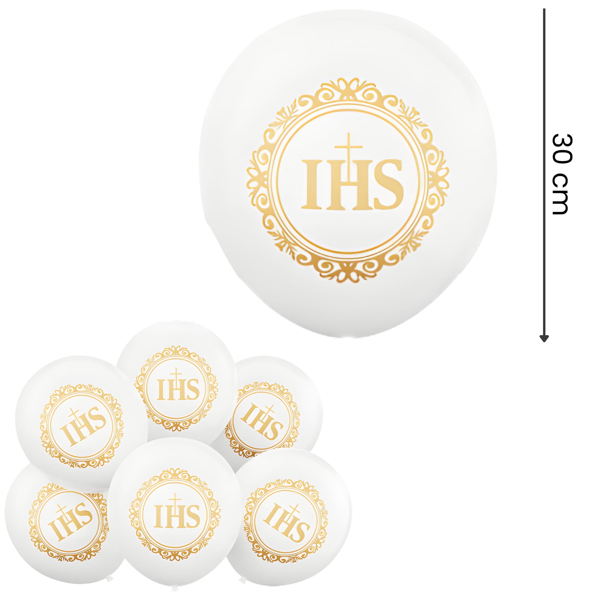 ➡️ 6 x balony 30 cm białych perłowych z napisem IHS